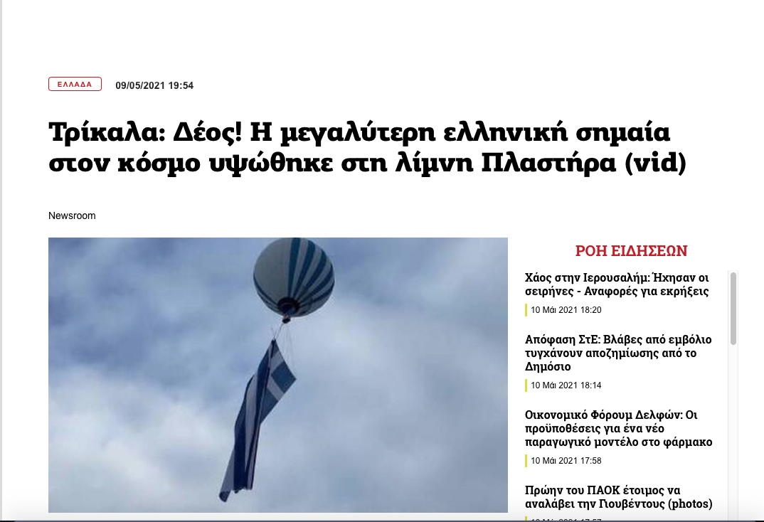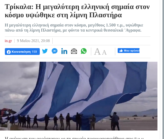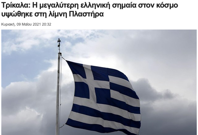 Με μεγάλους τίτλους μάλιστα ένιωσαν το δέος για την μεγαλύτερη σημαία που υψώθηκε στα Τρίκαλα, όπως έγραφαν.