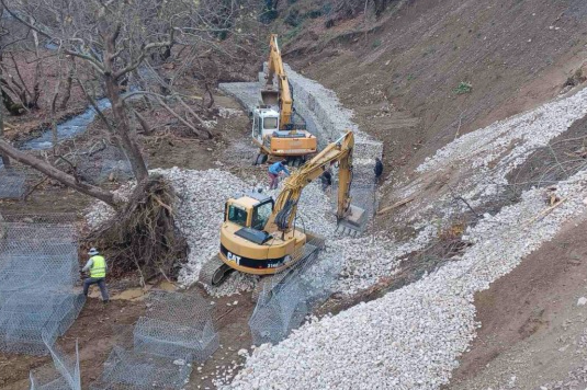 -Οδικό τμήμα από Μνημείο Εθνικής Αντίστασης «Κανόνια» έως Ραχούλα με γεωτεχνική αποκατάσταση, υδραυλικά έργα, εργασίες μετατόπισης χάραξης ανάντη ( εκσκαφές- εξυγίανση)