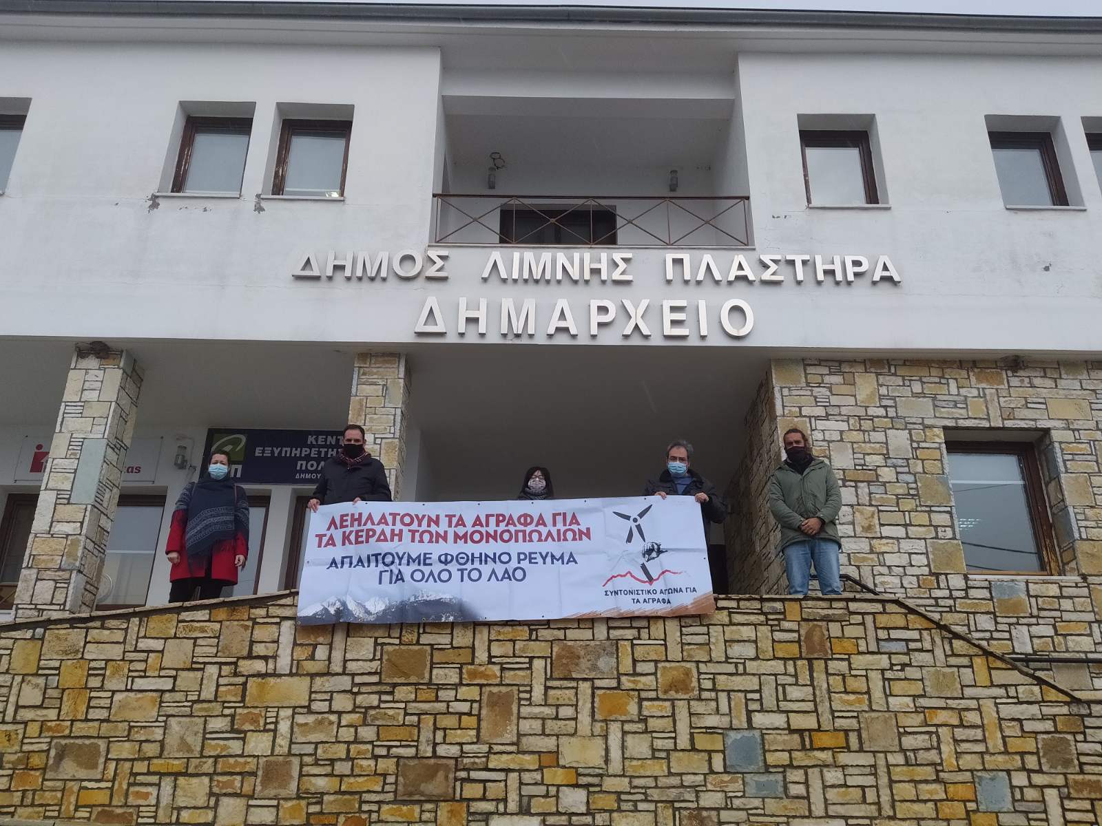 Να σημειωθεί ότι νωρίτερα χθες το Συντονιστικό Αγώνα ενάντια στα αιολικά στα Άγραφα προχώρησε σε συμβολική παράσταση διαμαρτυρίας στο Δημαρχείο της Λίμνης Πλαστήρα. Τα μέλη του συντονιστικού που συναντήθηκαν με το Δήμαρχο εξέφρασαν την αντίθεσή τους στην αναθεωρημένη Μελέτη Περιβαλλοντικών Επιπτώσεων, αλλά και στη διεξαγωγή της συνεδρίασης του Δημοτικού Συμβουλίου δια περιφοράς. Όπως τόνισε το μέλος του Στυντονιστικού και δημοτικός σύμβουλος της «Λαϊκής Συσπείρωσης» κ. Βασίλης Ελευθερίου, δεν δίνεται η δυνατότητα διαλόγου και τοποθετήσεων από τους φορείς που έχουν δώσει σκληρούς αγώνες για το συγκεκριμένο θέμα.