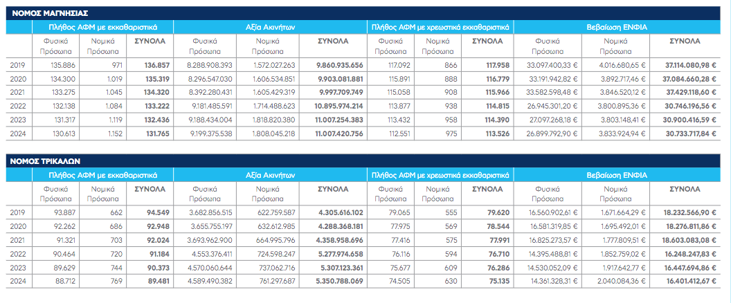 Σε βαθος 6ετίας τα ποσά του ΕΝΦΙΑ που κλήθηκαν να πληρώσουν οι Καρδιτσιώτες διαμορφώνονται ως εξής: