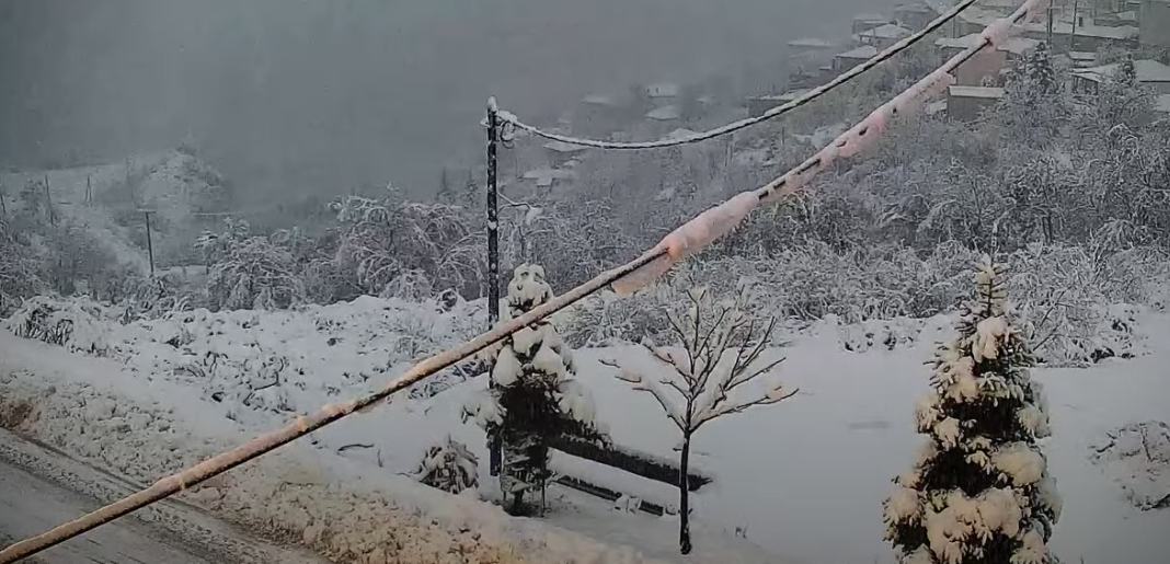 Όπως καταγράφει ο Νέος Αγών, η χιονόπτωση ξεκίνησε στα μεγαλύτερα υψόμετρα του ορεινού όγκου, ενώ στη συνέχεια επεκτάθηκε και σε περιοχές με χαμηλότερο υψόμετρο, αλλά και ημιορεινές.