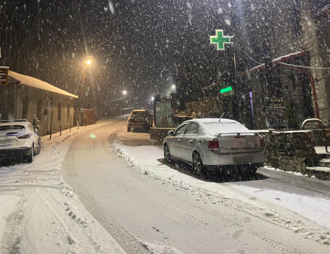 Η χιονόπτωση συνεχίστηκε τις βραδινές ώρες, ενώ σήμερα σύμφωνα με τα μετεωρολογικά σύστημα αναμένονται πυκνότερες χιονοπτώσεις κατά διαστήματα.
