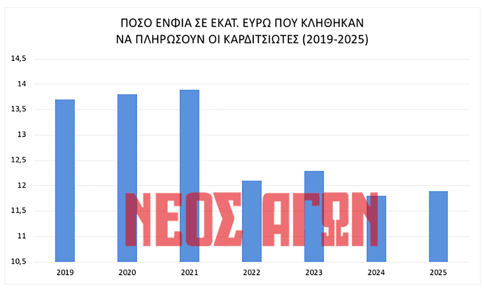 Σε βαθος 7ετίας τα ποσά του ΕΝΦΙΑ που κλήθηκαν να πληρώσουν οι Καρδιτσιώτες διαμορφώνονται ως εξής: