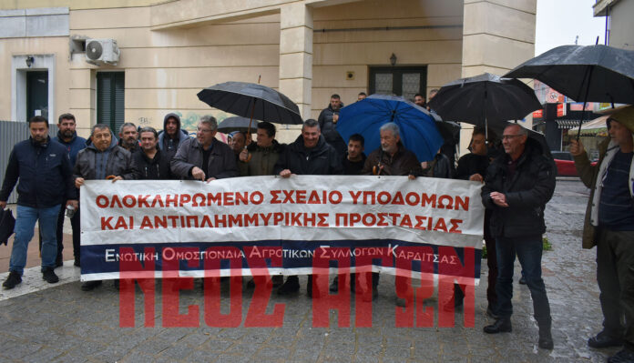 Με την κακοκαιρία να σαρώνει διάφορες περιοχές της χώρας, στην κινητοποίηση που γίνεται υπό βροχή, οι αγρότες έχουν πανό της Ομοσπονδίας για ολοκληρωμένο σχέδιο υποδομών και αντιπλημμυρικής προστασίας. «Αγωνιζόμαστε και γι’ αυτό, για την αντιπλημμυρική προστασία. Δεν έχει δικαίωμα καμία κυβέρνηση και καμία πολιτική να μας φέρει μπροστά σε νέους κινδύνους. Και σέρνουν εμάς στα δικαστήρια που αγωνιζόμαστε για ένα καλύτερο μέλλον, ενώ την ίδια ώρα είναι έξω οι φραπέδες. Αυτή είναι η πολιτική που θέλει να μας ξεκληρίσει και δεν έχει γίνει κανένα έργο στην περιοχή μας. Να σταματήσει η τρομοκρατία και οι δίκες, να φύγουν τα ΜΑΤ και η Αστυνομία. » τόνισε ο Γραμματέας της Ομοσπονδίας Γιάννης Τσιούτρας.