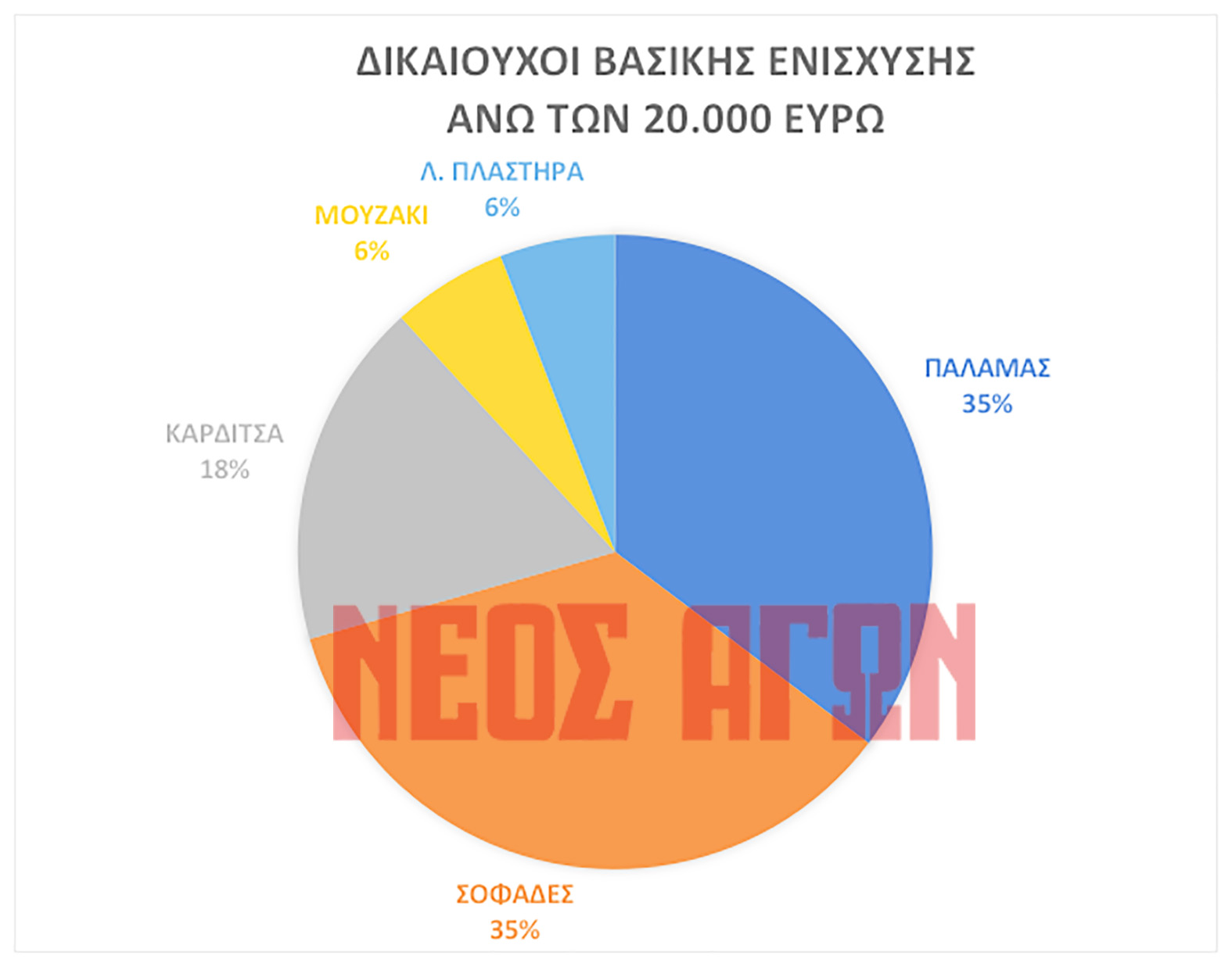 – το 0,1%, δηλαδή 15, εισέπραξαν ποσά άνω των 50.000 ευρώ. Σε αυτούς συμπεριλαμβάνονται συνεταιρισμοί και ένας Δήμος, των το μεγαλύτερο ποσό (περίπου 145.000 ευρώ) αφορά τον δικαιούχο από την περιοχή του Δήμου Παλαμά που προαναφέραμε και στη βασική ενίσχυση. Από τους 15 δικαιούχους, οι 6 βρίσκονται στο Δήμο Σοφάδων, 4 στο Δήμο Καρδίτσας, 3 στο Δήμο Παλαμά και από ένας στους Δήμους Μουζακίου και Αργιθέας. Τα δεδομένα αποτυπώνουμε στο σχετικό γράφημα το οποίο παρουσιάζουμε.