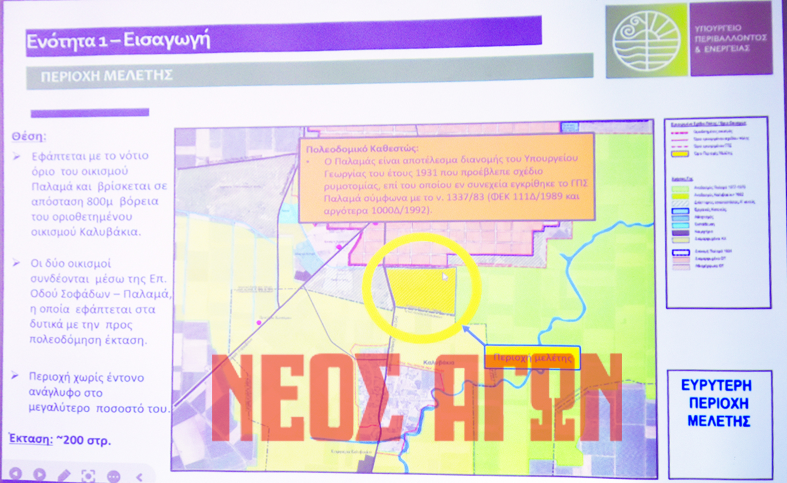 Η παρουσίαση , όπως κατέγραψε ο Νέος Αγών, πραγματοποιήθηκε στο κατάμεστο από κάτοικους της πλημμυρόπληκτης Μεταμόρφωσης κέντρο πολλαπλών χρήσεων του Δήμου Παλαμά, παρουσία του Υπουργού Αγρ. Ανάπτυξης Κώστα Τσιάρα, του Υφυπουργού Κλιματικής Κρίσης και Πολιτικής Προστασίας Χρήστου Τριαντόπουλου, του Γενικού Γραμματέα Χωρικού Σχεδιασμού και Αστικού Περιβάλλοντος Ευθυμίου Μπακογιάννη, των Βουλευτών Καρδίτσας Ασ. Σκόνδρα, Γ. Κωτσού και Τ. Σπάνια, του Περιφερειάρχη Θεσσαλίας Δ. Κουρέτα, Δημάρχου Παλαμά Σ. Δασκαλόπουλου και του Προέδρου της δ.κ. Μεταμόρφωσης Π. Κοντογιάννη κ.ά.
