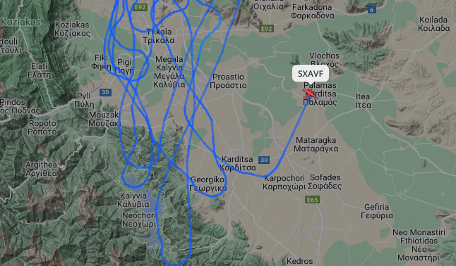 Με τα σύννεφα να σκεπάζουν απειλητικά τον ουρανό, όπως καταγράφει ο Νέος Αγών, το αεροσκάφος τύπου Piper PA-31T Cheyenne απογειώθηκε από τη Θεσσαλονίκη και πραγματοποιεί πτήσεις.