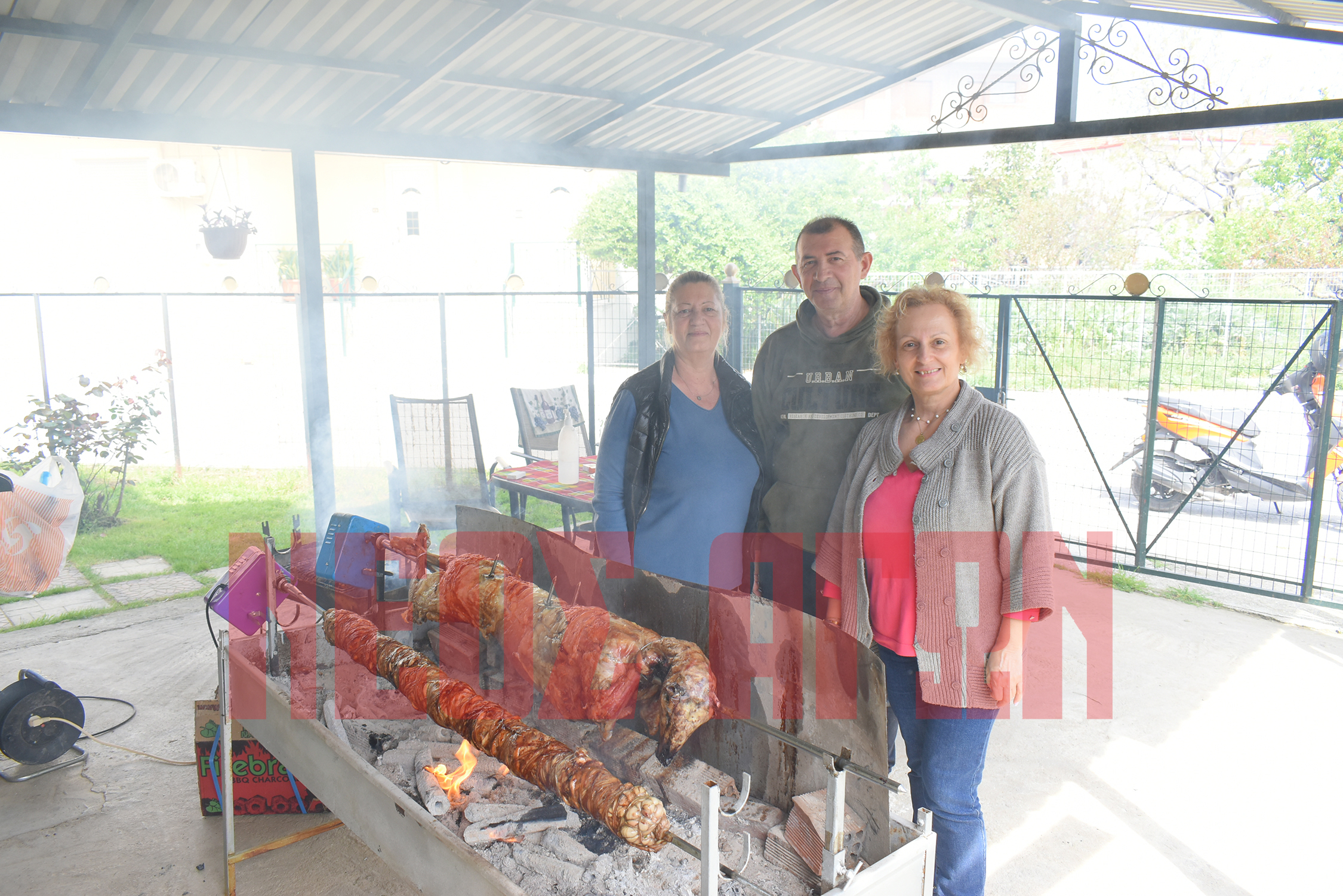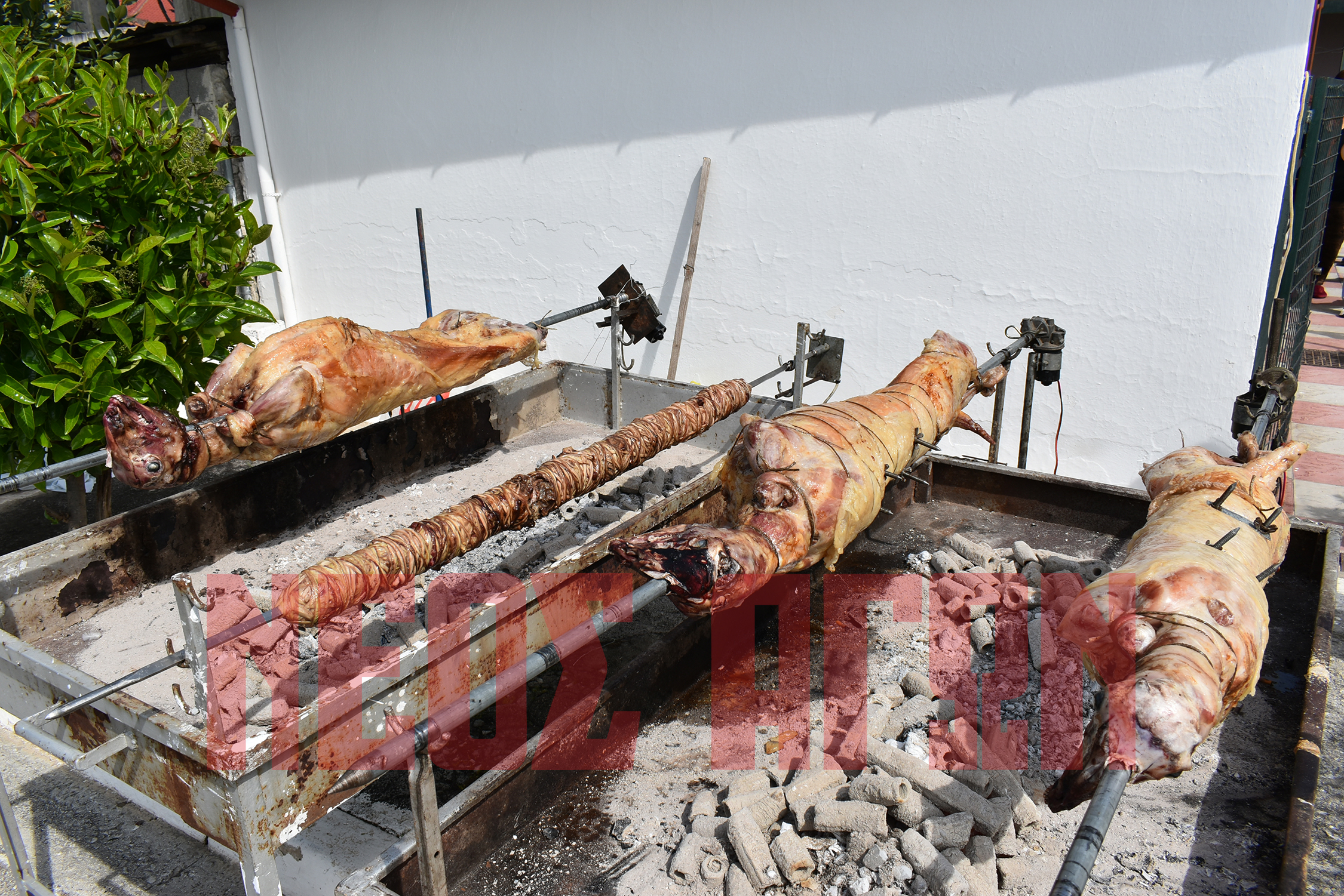 Η ημέρα ξεκίνησε από τα χαράματα, με τις φωτιές να ανάβουν και τους παραδοσιακούς ψήστες να παίρνουν θέση πάνω από τα κάρβουνα, φροντίζοντας με μεράκι το αρνί ή το κατσικάκι.