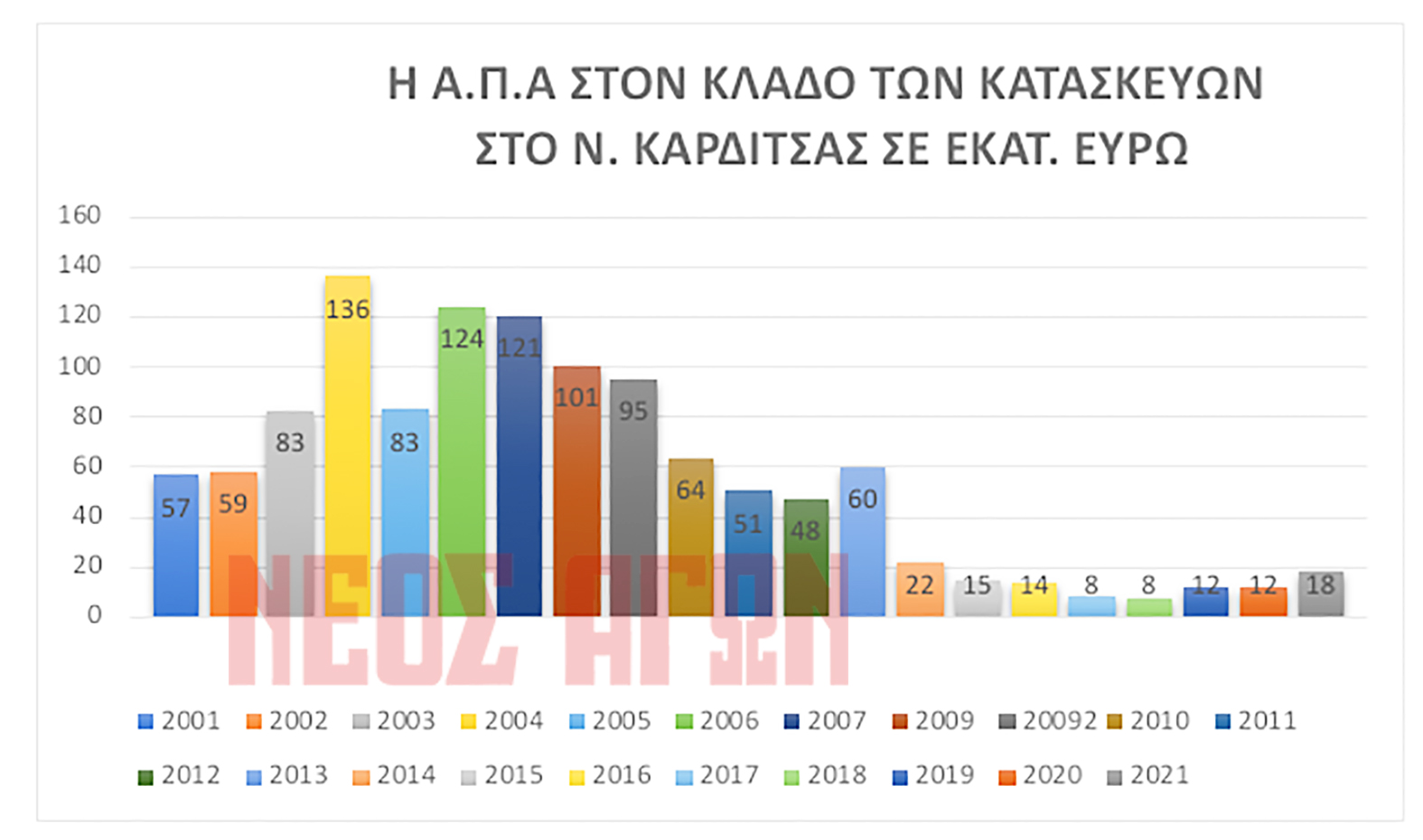 Από εκεί και μετά, με τα όποια σκαμπανεβάσματα, ακολουθά μια καθοδική πορεία για να φθάσει στο 2021 σύμφωνα με τα στοιχεία της ΕΛΣΤΑΤ στα 986 εκατομμύρια ευρώ. Τα στοιχεία αυτά επεξεργαστήκαμε και παραθέτουμε στον πίνακα και τα σχεδιαγράμματα, όπου αποτυπώνεται καλύτερη εικόνα.