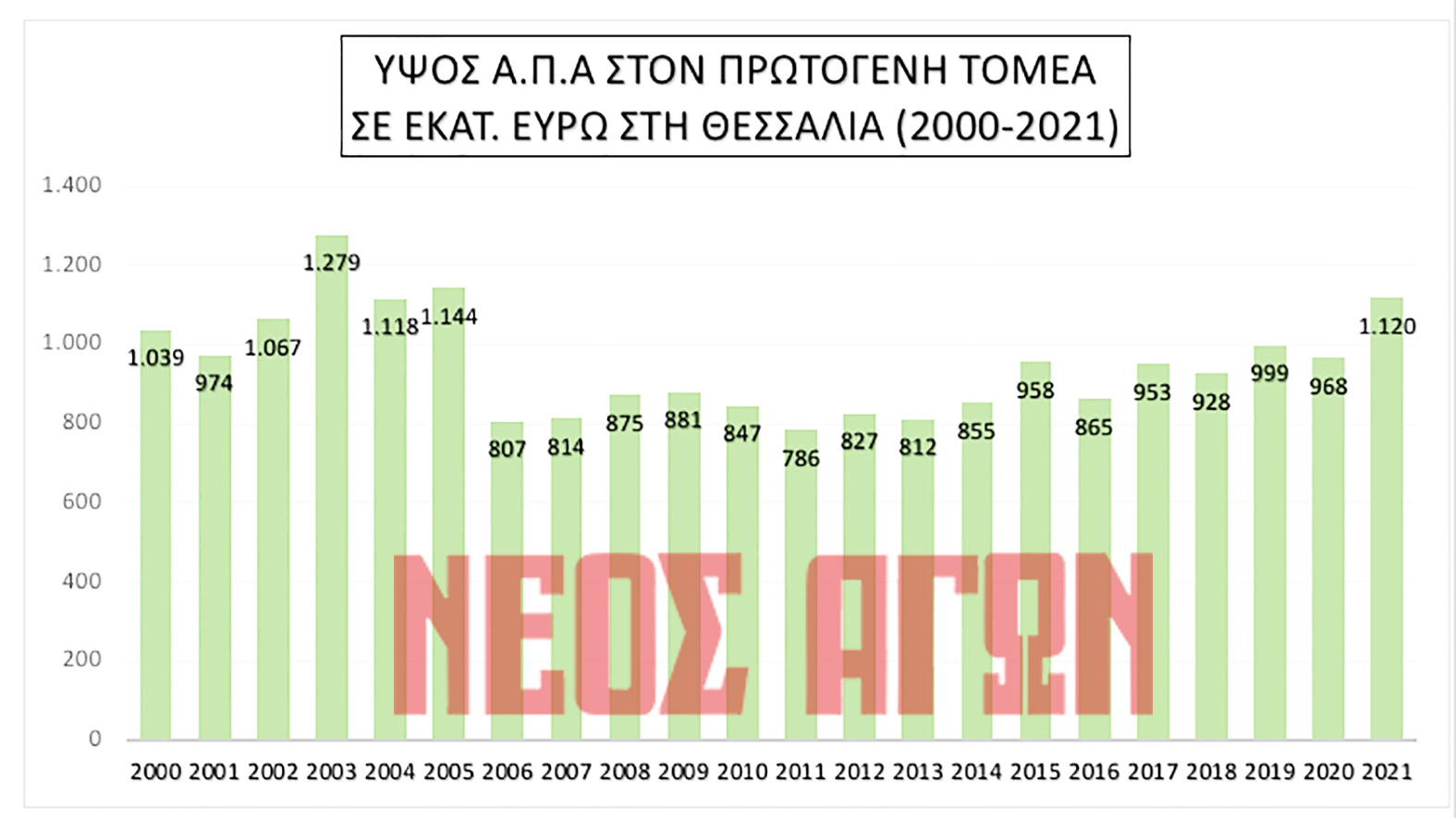 Τα στοιχεία που παρουσιάζουμε, αφορούν τις χρονιές μέχρι και το 2021. Tα ερωτήματα για τα επόμενα έτη είναι πολλά και κρίσιμα, αφού δεν γνωρίζουμε τις παραγωγικές συνέπειες στον πρωτογενή τομέα από τις δύο καταστροφικές θεομηνίες τον «Ιανό» και τον «Ντάνιελ» αλλά και ολόκληρες τις επιπτώσεις στην οικονομία από τον covid μέχρι την οριστική άρση των μέτρων.