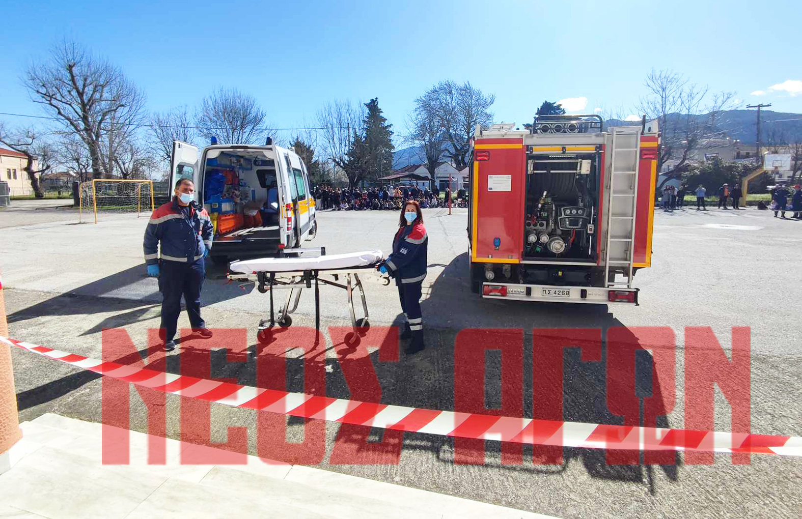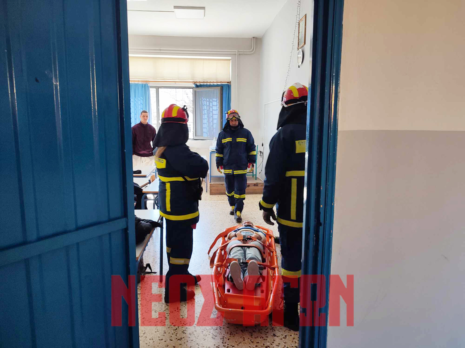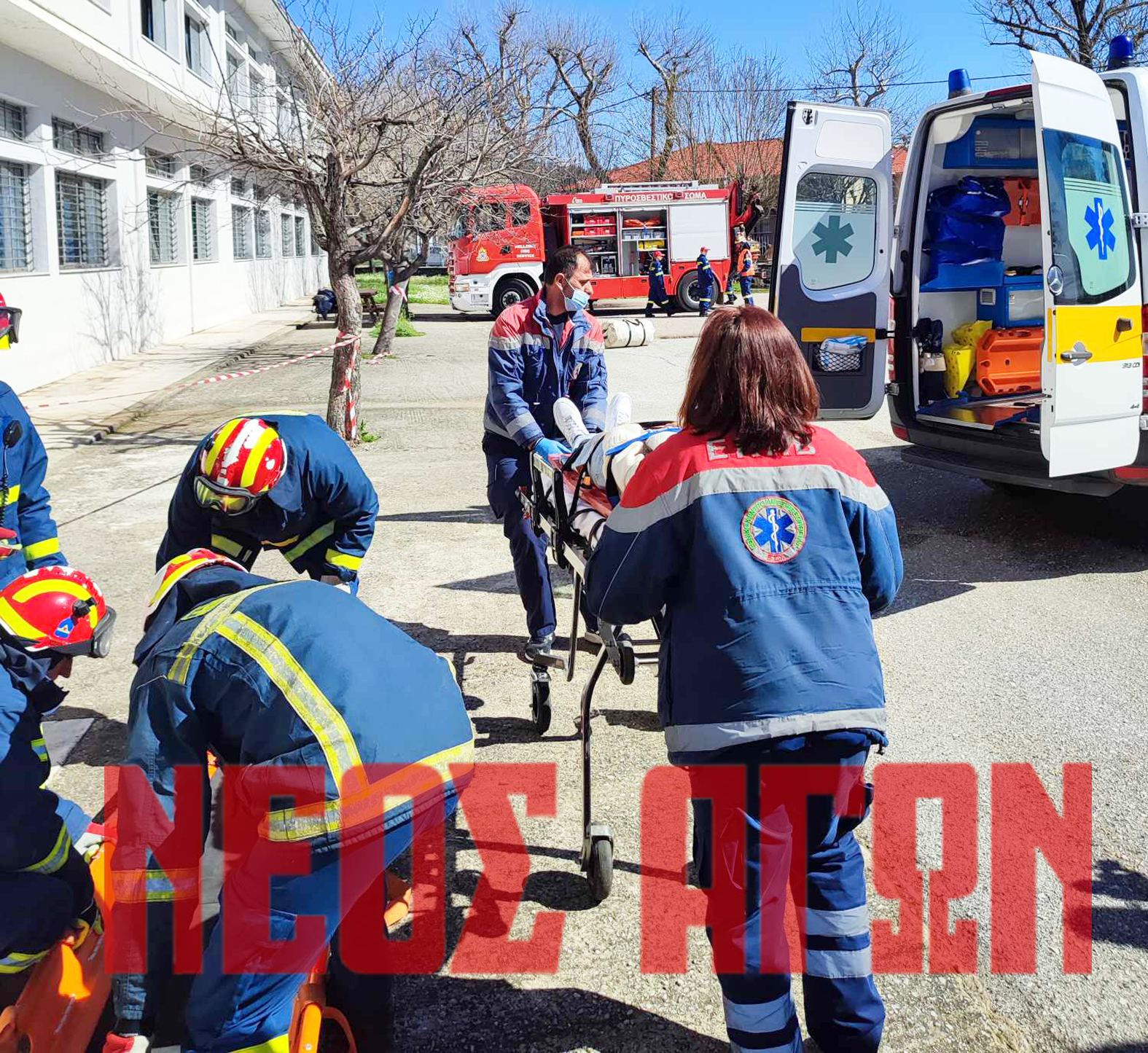 Δεν πρόκειται για πραγματικό συμβάν, αλλά για άσκηση ετοιμότητας και αντιμετώπισης έκτακτων καταστάσεων που πραγματοποιείται σήμερα στο Γενικό Λύκειο Μουζακίου.