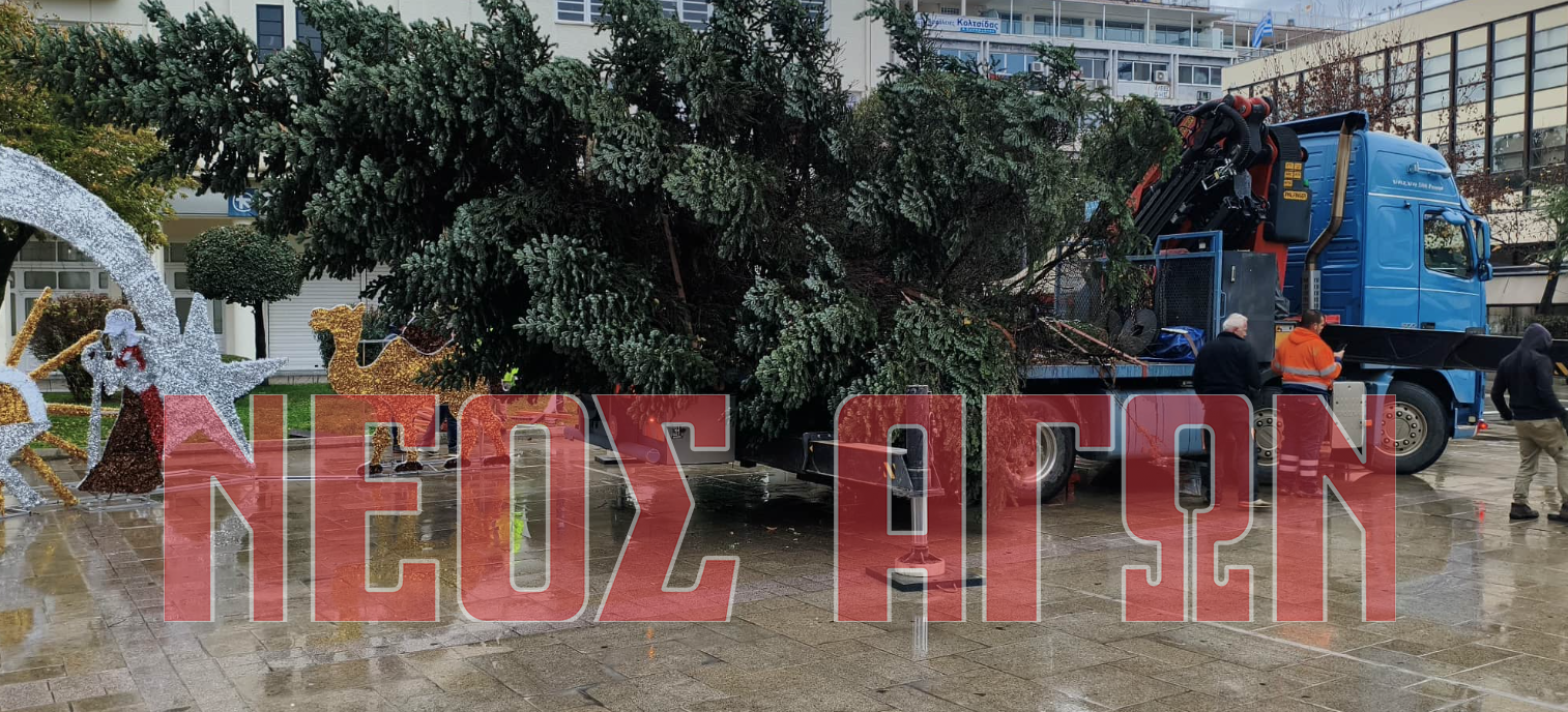 Το δένδρο θα στολιστεί τις επόμενες ημέρες και θα φωταγωγηθεί δίνοντας ξεχωριστό τόνο στον εορταστικό διάκοσμο.