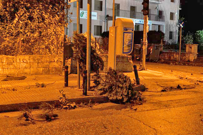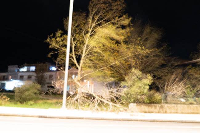Επίσης σημειώθηκαν πτώσεις δέντρων σε διάφορα σημεία όπως και αποξηλώσεις σκεπών.