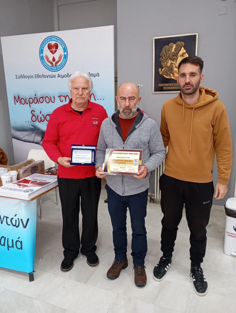 Συγχαίρουμε όλους τους εθελοντές αιμοδότες, που παραβρέθηκαν στην αιμοδοσία και τους ευχαριστούμε θερμά για την ανιδιοτελή προσφορά τους με την οποία στέλνουν ένα ηχηρό μήνυμα στην κοινωνία μας ότι το σπουδαιότερο δώρο -δώρο ζωής- που μπορούμε να προσφέρουμε δίνοντας αίμα, είναι η υγεία…το πολυτιμότερο αγαθό!.