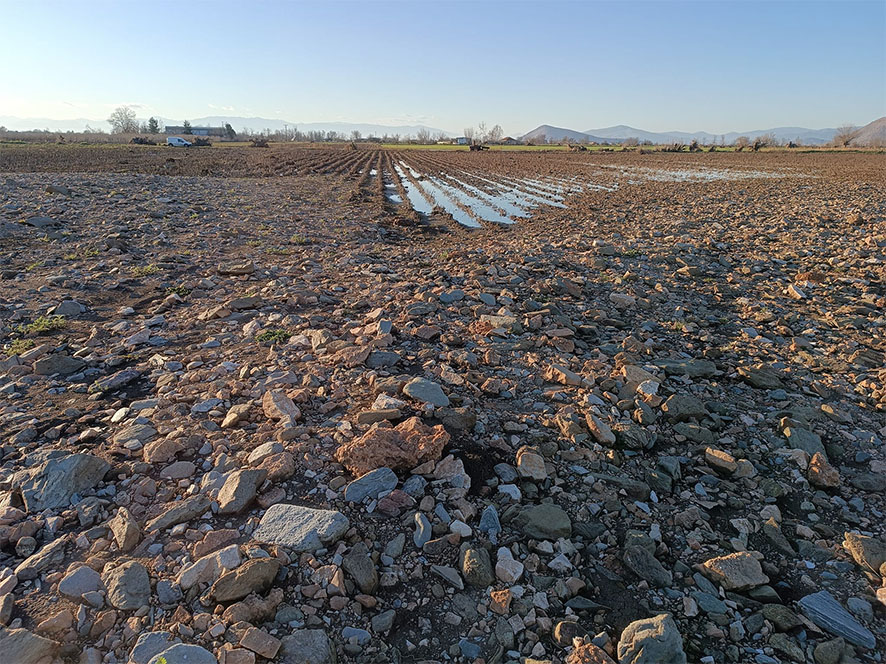 Σχεδόν πέντε μήνες μετά την καταστροφή, πολλά χωράφια στην περιοχή του Δήμου Παλαμά είναι αδύνατον να καλλιεργηθούν καθώς παραμένουν μπαζωμένα από πέτρες και άλλα φερτά υλικά.
