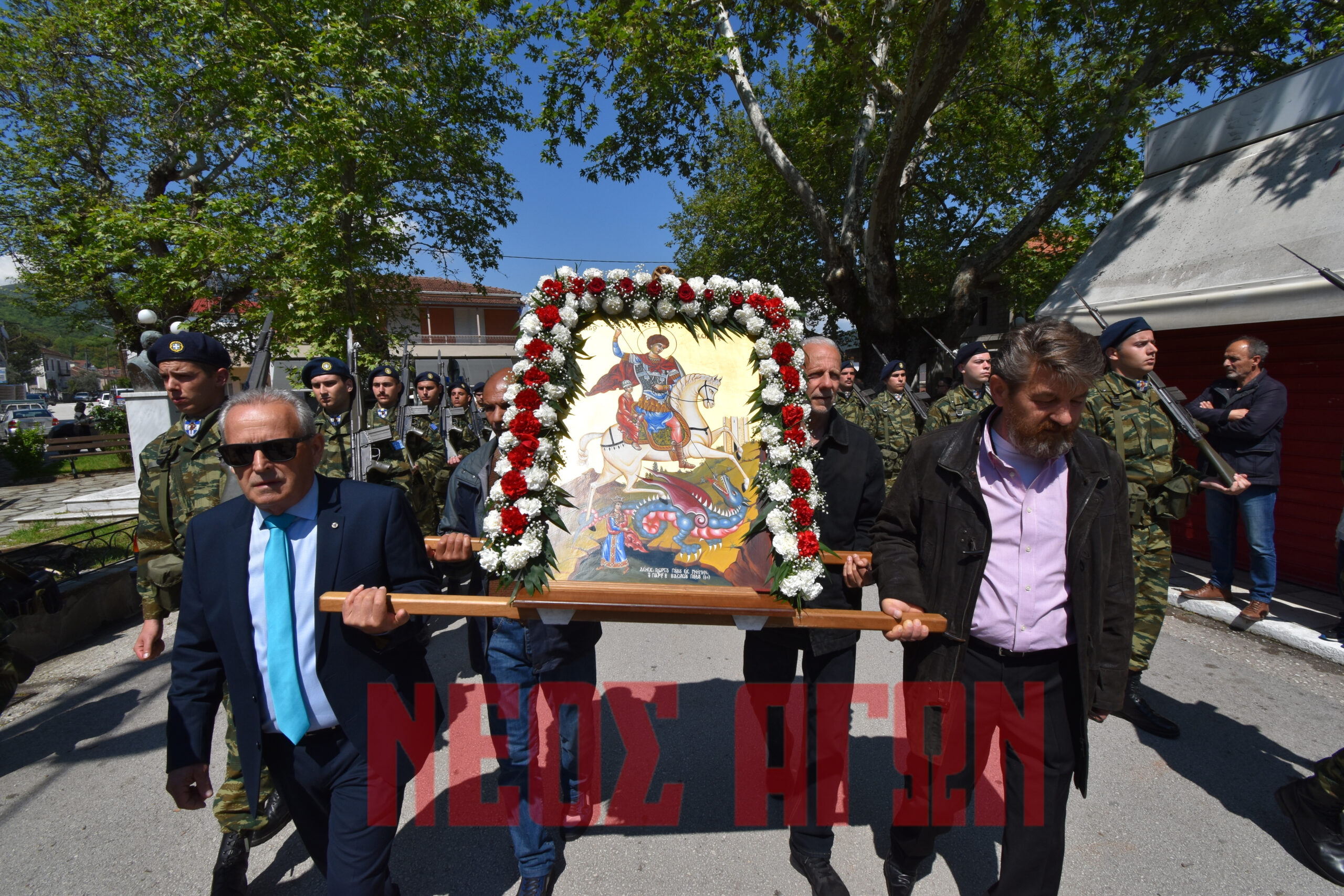 Οι εκδηλώσεις άρχισαν με Δοξολογία στον Ιερό Ναό Αγίου Νικολάου Μαυρομματίου. Προεξάρχοντος του Μητροπολίτου Θεσσαλιώτιδος και Φαναριοφερσάλων κ.κ. Τιμόθεου, και ιερέων της Ενορίας τελέστηκε στη συνέχεια Επιμνημόσυνη Δέηση μπροστά στον έφιππο ανδριάντα του Ήρωα. Προηγήθηκε πομπή από την Εκκλησία μέχρι και την πλατεία με προπορευόμενη την Εικόνα του Αγίου Γεωργίου.