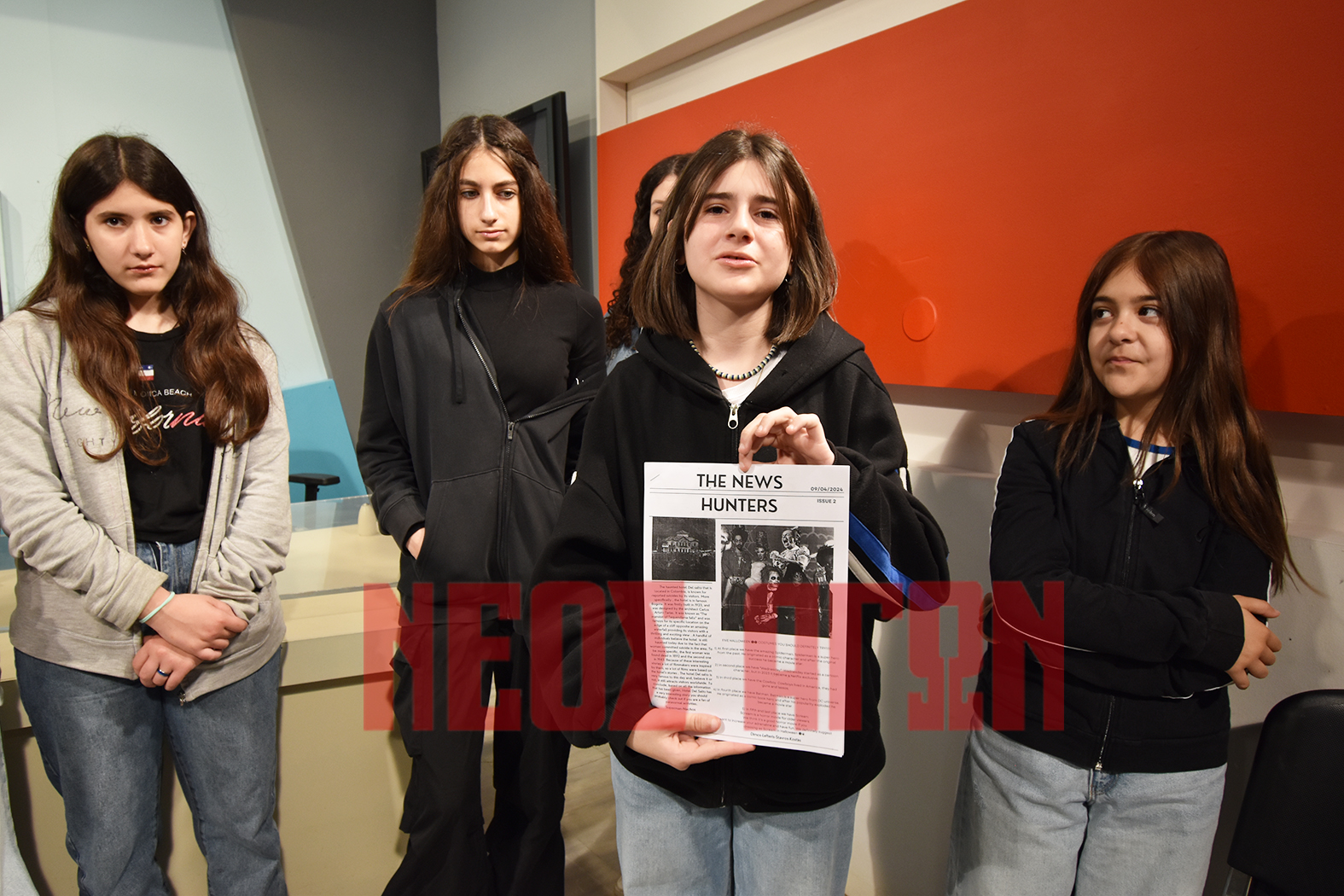 Μάλιστα οι μαθητές παρουσίασαν στους συντάκτες της εφημερίδας, την εφημερίδα που οι ίδιοι εκδίδουν στη αγγλική γλώσσα. Η εφημερίδα έχει τον τίτλο “News Hunters”…
