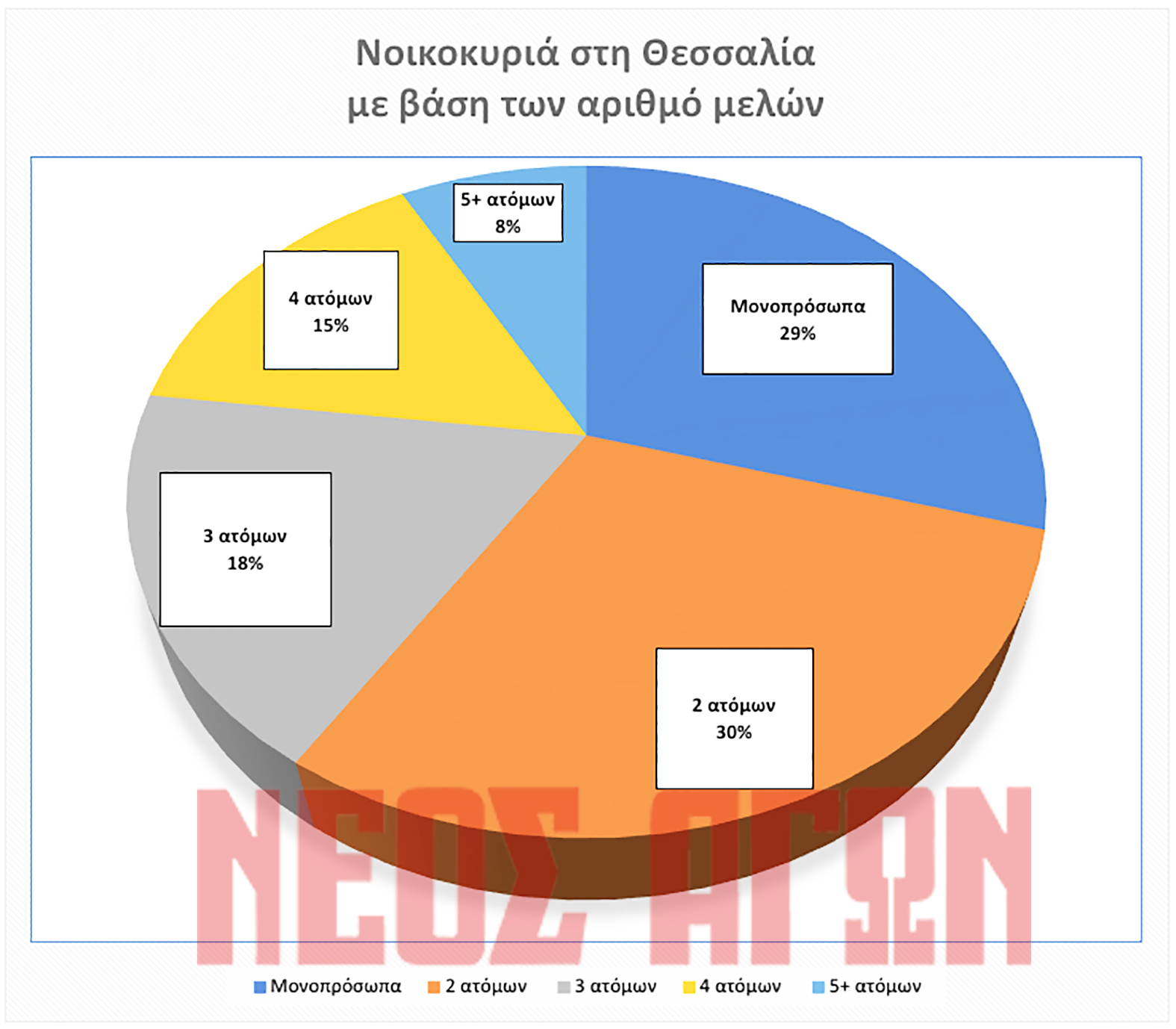 Πρακτικά αυτό σημαίνει ότι το 59% του συνόλου των νοικοκυριών στη Θεσσαλία αποτελείται μέχρι δύο άτομα, ενώ μέχρι τρία άτομα το 77%.