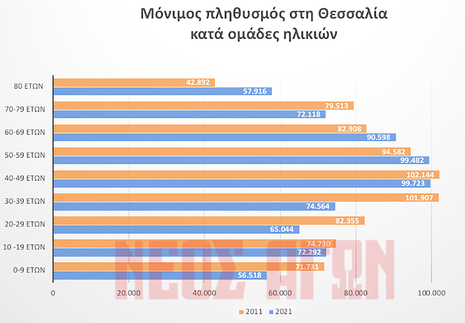 -ηλικία 20-29 ετών μείωση 21% (από 82.355 το 2011 σε 65.044 το 2021)