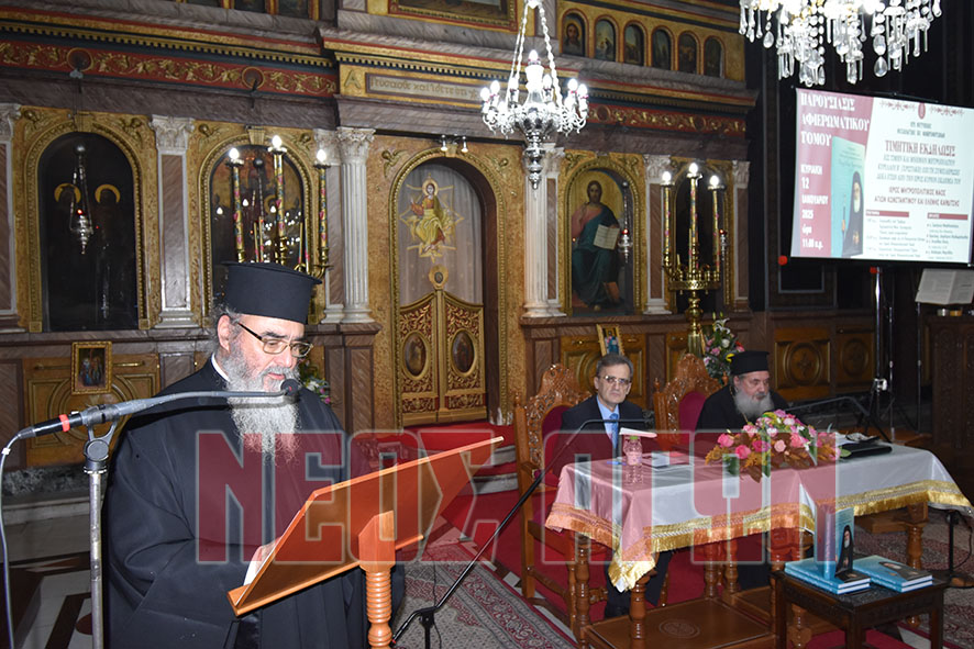 Η Ιερά Μητρόπολη για να τιμήσει τη μνήμη του προχώρησε στην έκδοση αφιερωματικού τόμου ο οποίος παρουσιάστηκε σήμερα Κυριακή στο Μητροπολιτικό Ναό των Αγίων Κωνσταντίνου και Ελένης.