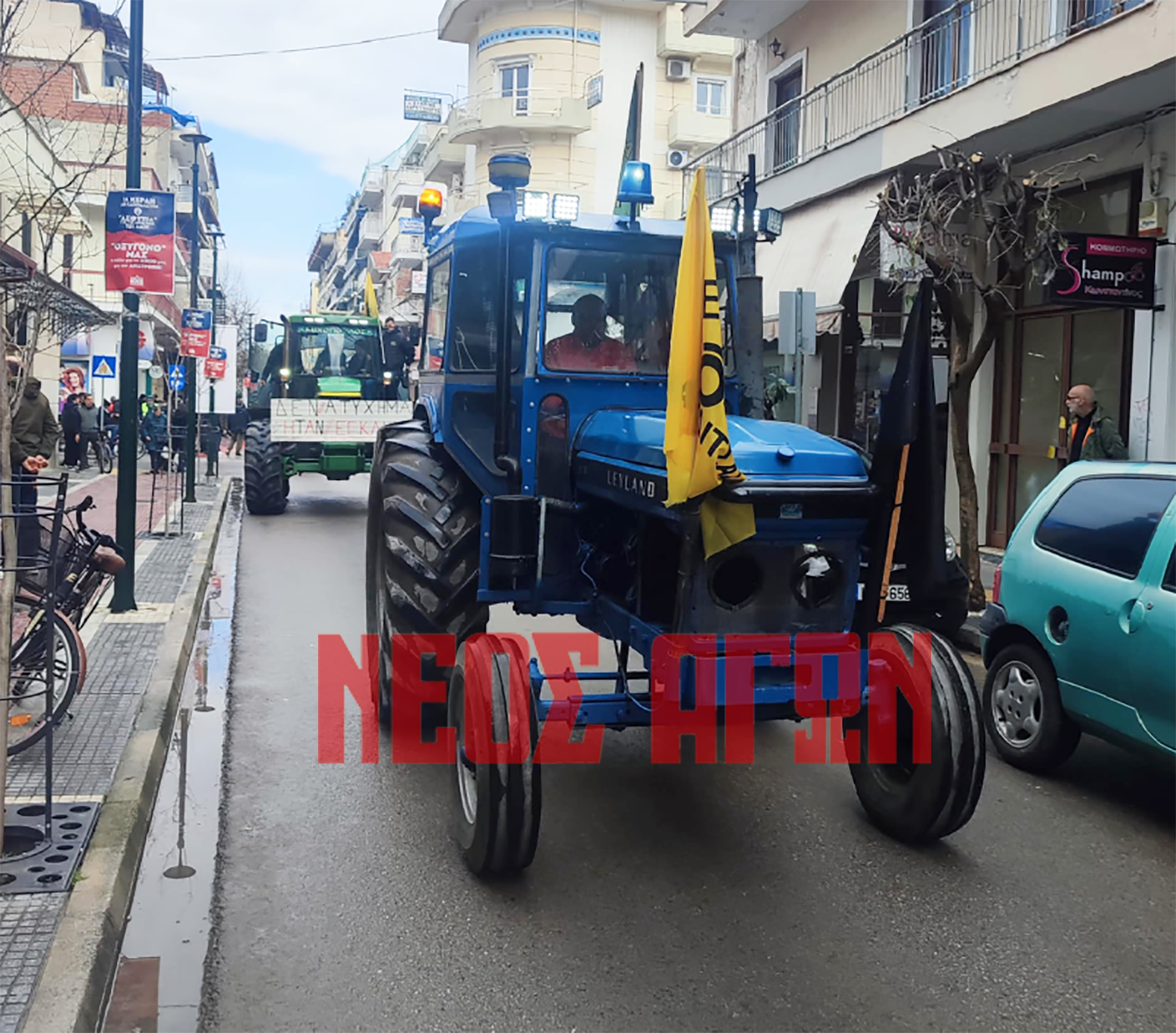 Με το πέρας της συγκέντρωσης, ξεκίνησε πορεία με συνθήματα, στην κεφαλή της οποία βρίσκεται συμβολικός αριθμός τρακτέρ.