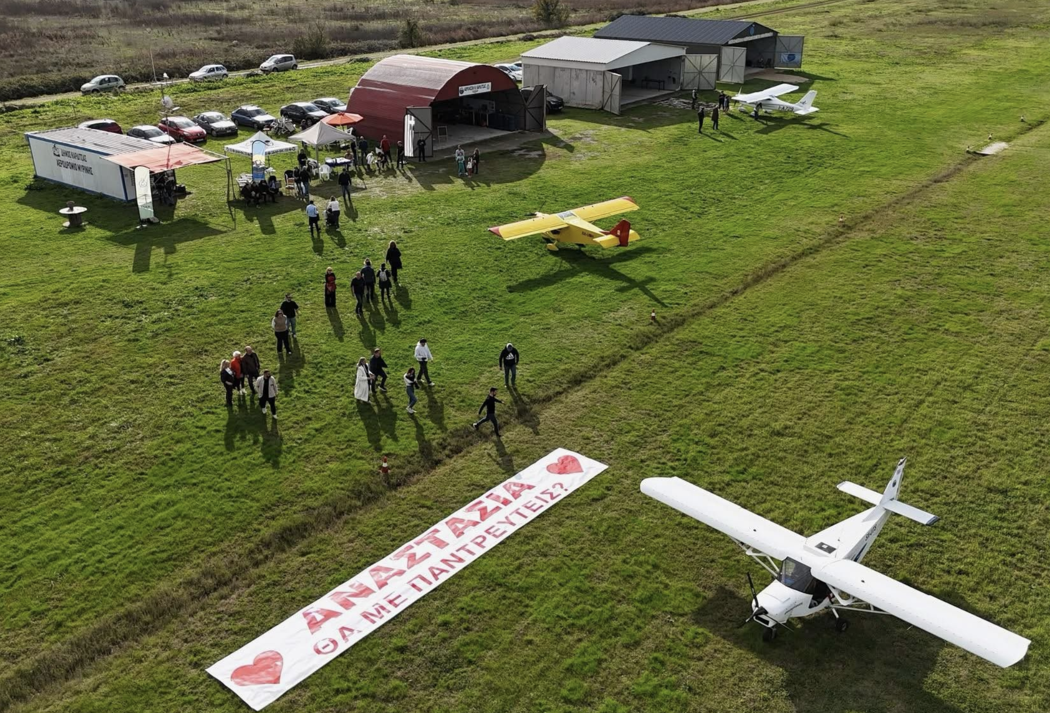 Η διοργάνωση μετατράπηκε σε ένα ρομαντικό σκηνικό για την πρόταση γάμου που έκανε ένας πιλότος και μέλος της Αερολέσχης Ν. Καρδίτσας από την Αγιά της Λάρισας στην αγαπημένη του.