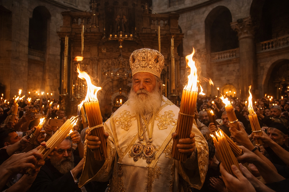 Β. Η Τελετή του «Αγίου Φωτός» το Μεγάλο Σάββατο αποτελεί μία από τις σημαντικότερες θρησκευτικές τελετές που διεξάγονται ετησίως στον Ναό της Αναστάσεως στην Ιερουσαλήμ και θεωρείται ένα από τα πλέον κεντρικά και ευαίσθητα γεγονότα του έτους. Δεκάδες χιλιάδες επισκέπτες, από το εσωτερικό και το εξωτερικό, διαφόρων χριστιανικών δογμάτων, επίσημες ξένες αποστολές συμμετέχουν σε αυτήν.