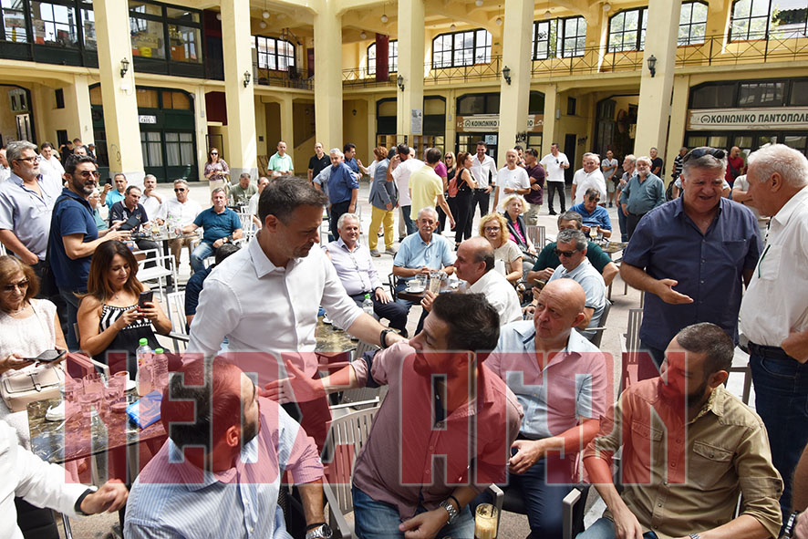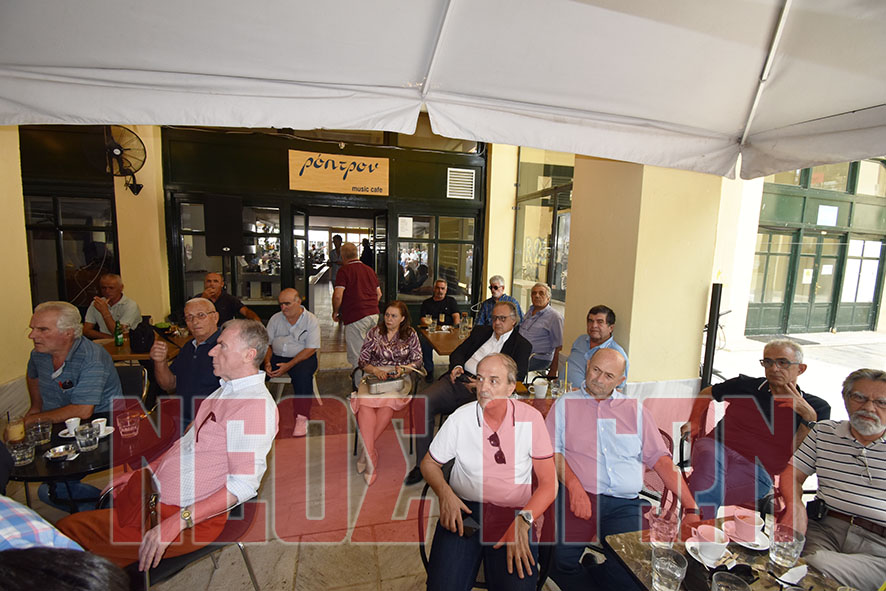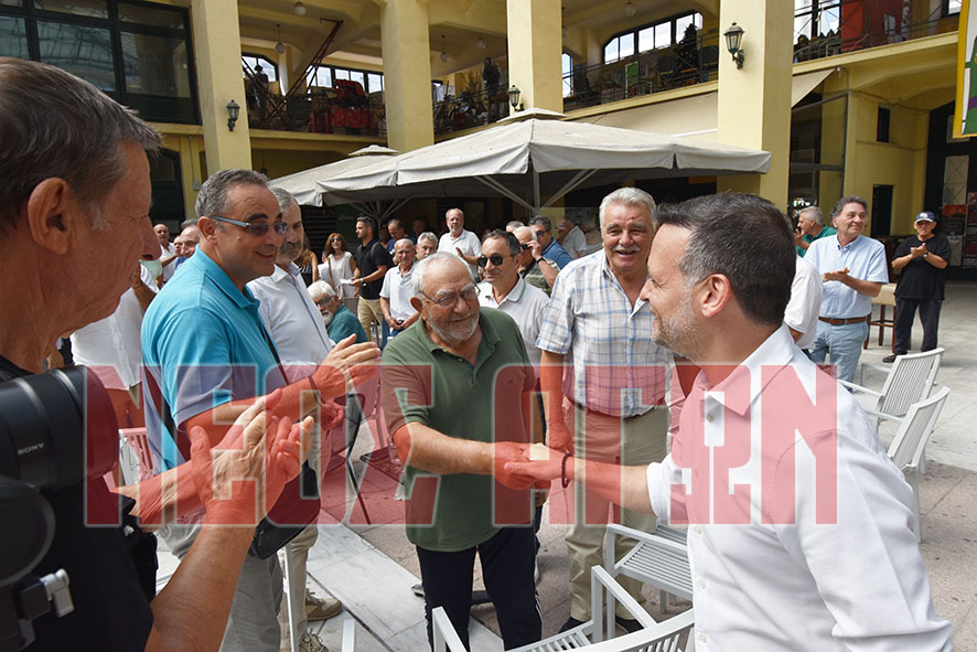 Ακολούθως μίλησε σε συγκέντρωση που πραγματοποιήθηκε στο καφέ Ρόπτρον στη Δημοτική Αγορά παρουσία πλήθους φίλων, στελεχών του ΠΑΣΟΚ και υποστηρικτών του.