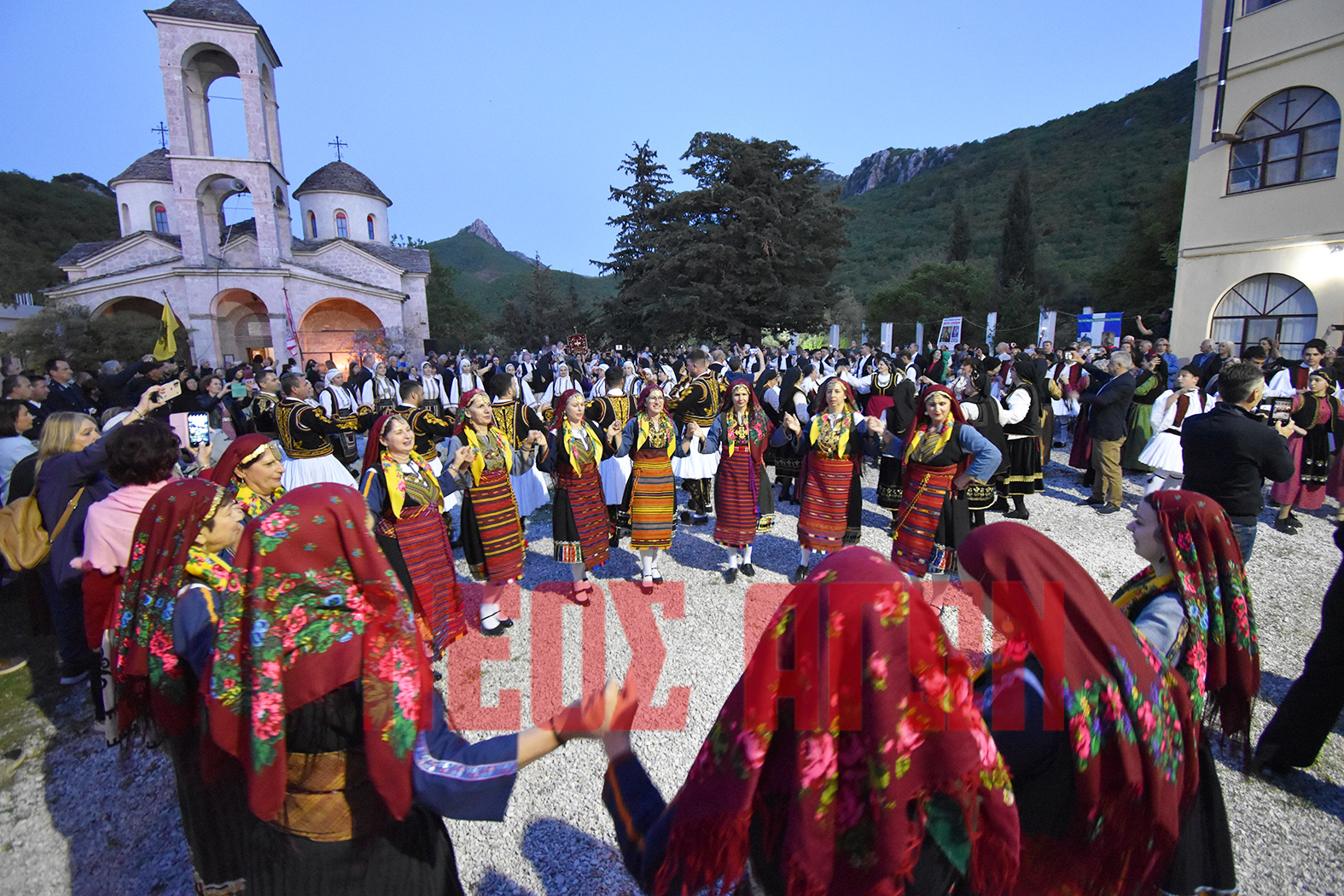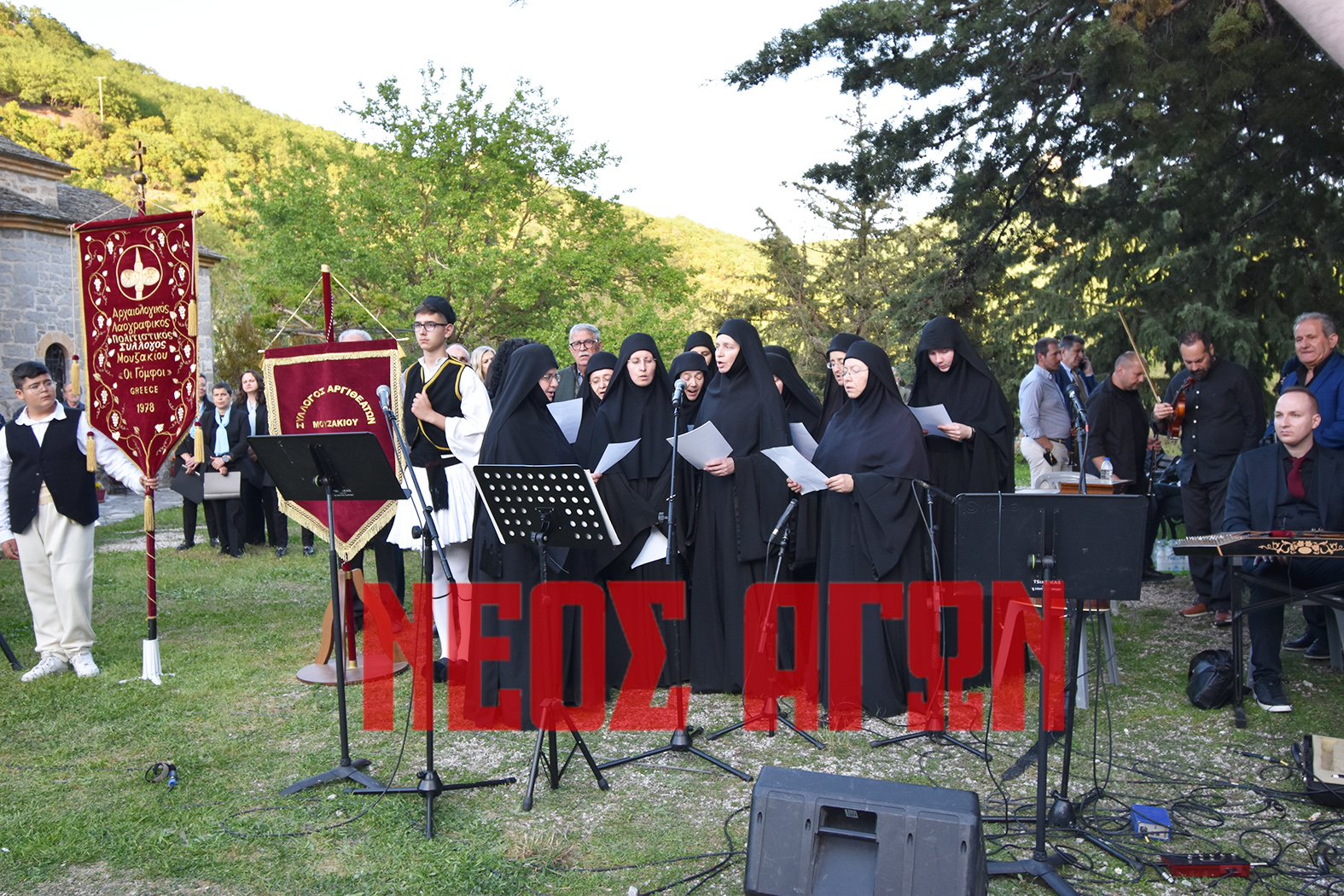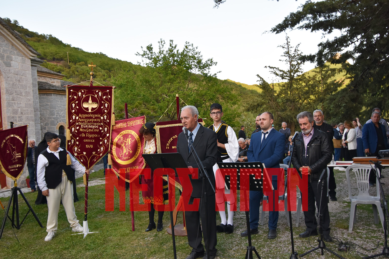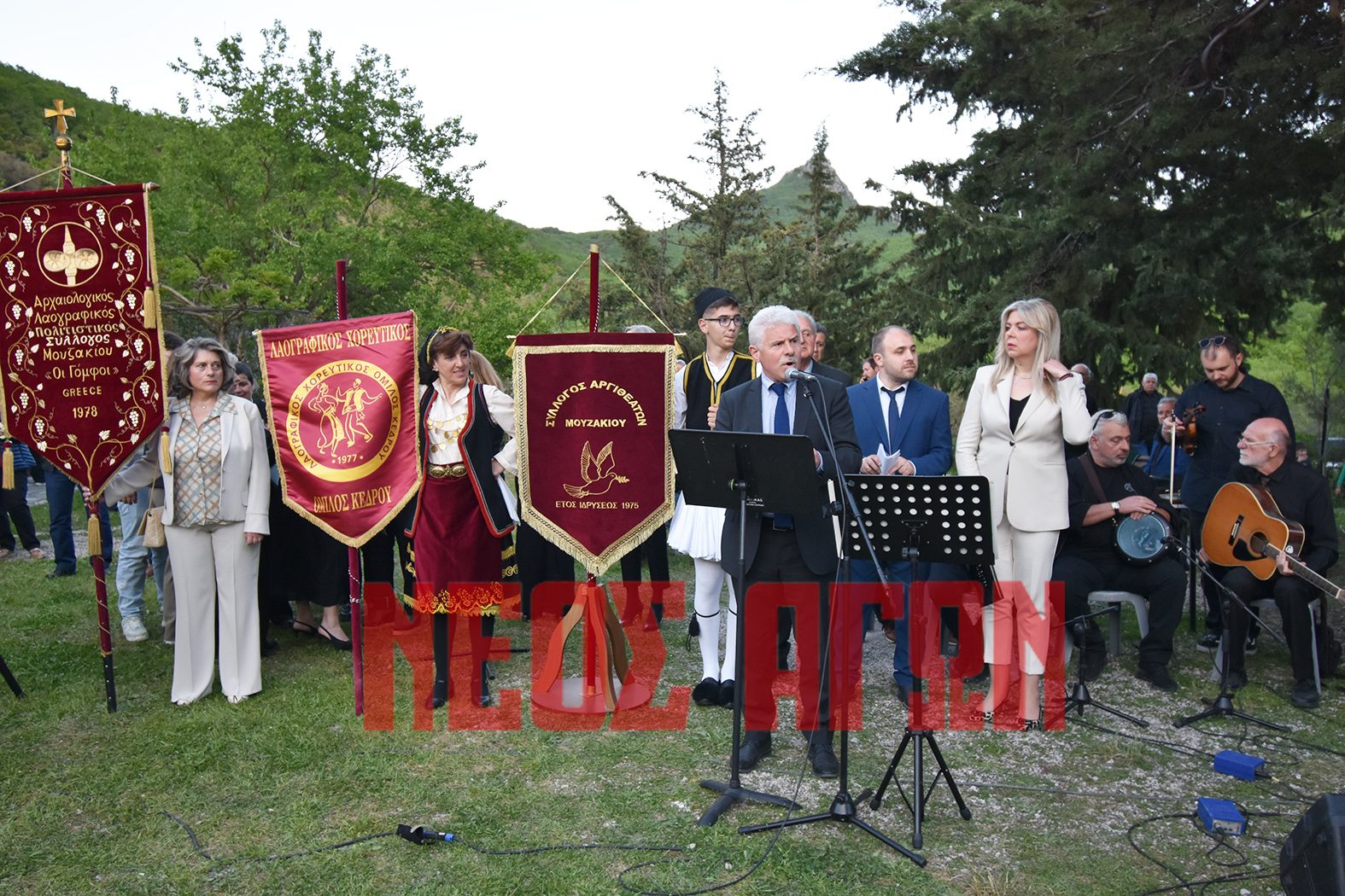 Κατά τη διάρκεια της εκδήλωσης, χαιρετισμούς απηύθυναν η Καθηγουμένη της Ι. Μονής Αγίου Γεωργίου Μύριαμ Μοναχή, ο Δήμαρχος Μουζακίου Θεοφάνης Στάθης, ο Πρόεδρος της Ένωσης Αγραφιώτικων Χωριών Βασίλης Τσαντήλας, ο Αντιπεριφερειάρχης Π.Ε. Καρδίτσας Κώστας Τέλιος, οι Βουλευτές Γιώργος Κωτσός και Τέλης Σπάνιας και εκπρόσωποι κομμάτων.