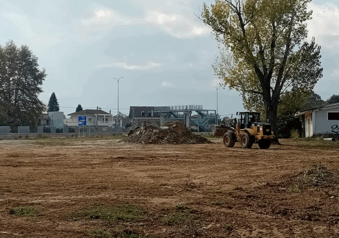 Χθες στην έκταση γύρω από τον υδατόπυργο διενεργούνταν εργασίες καθαρισμού. Με τις φυτεύσεις που περιλαμβάνονται στο έργο του κόμβου και την ευρύτερη παρέμβαση στο χώρο η είσοδος της πόλης από την νότια πλευρά αλλάζει όψη και αναβαθμίζεται και αισθητικά πέρα από την καλύτερη ρύθμιση της κυκλοφορίας των οχημάτων που επιφέρει.