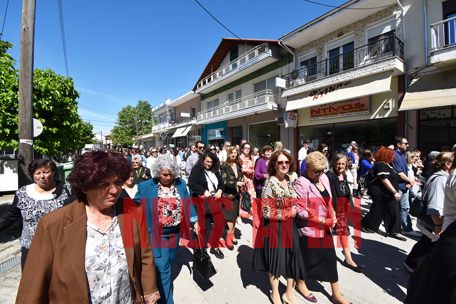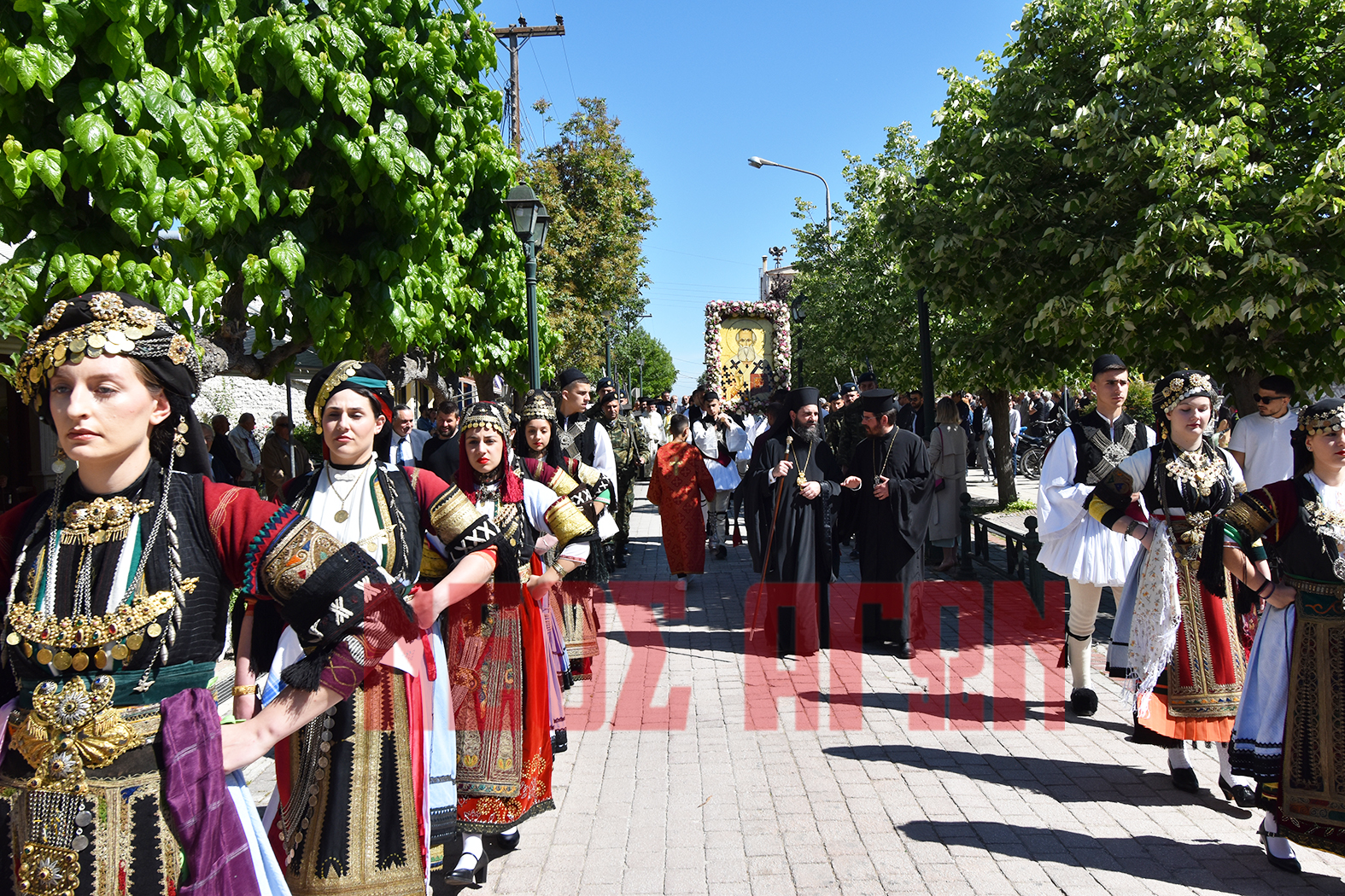Στη συνέχεια με πομπή πραγματοποιήθηκε λιτάνευση της εικόνας του Αγίου Αθανασίου στους κεντρικούς δρόμους του Παλαμά.