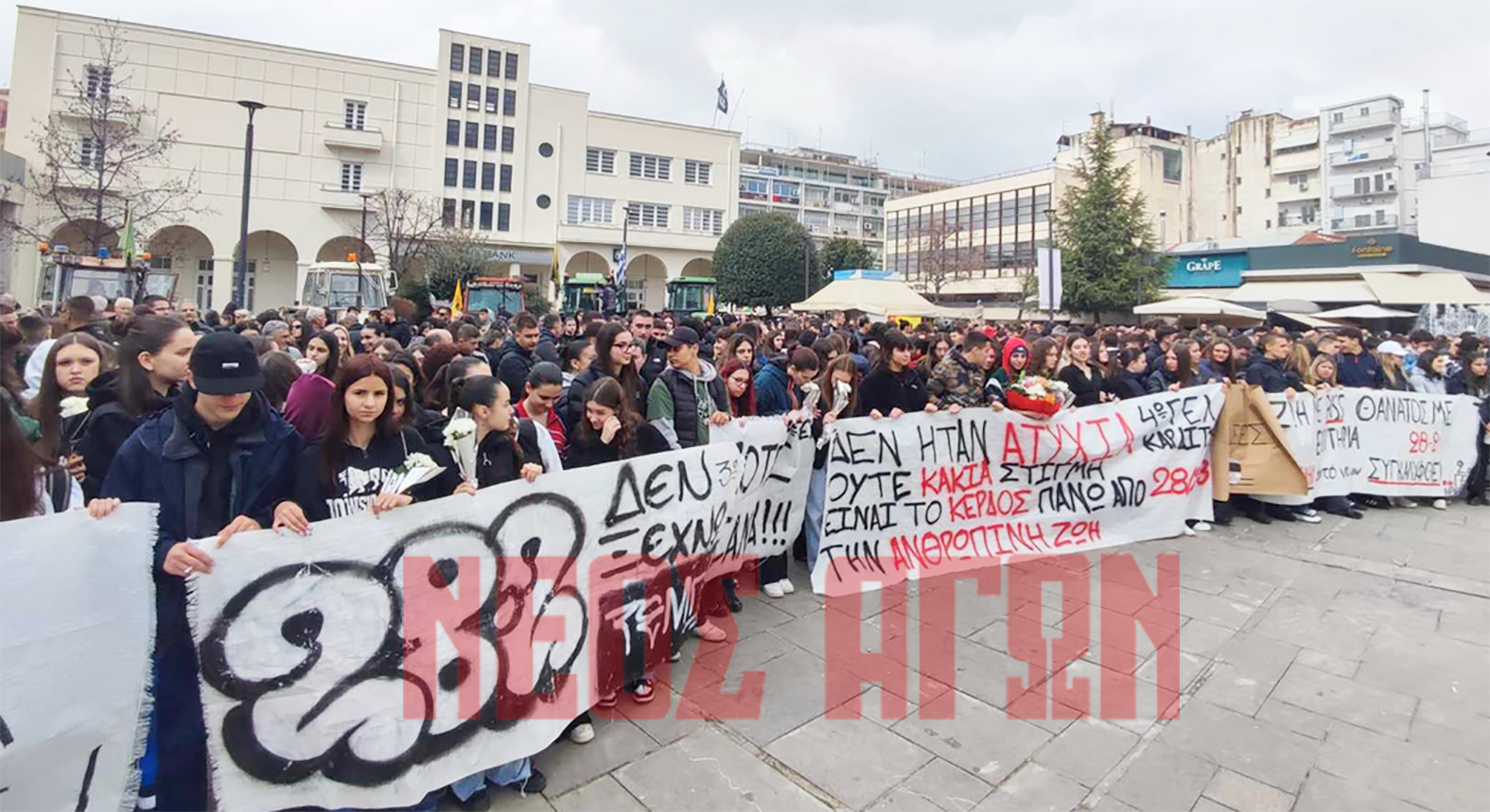 Η συμμετοχή στην απεργιακή κινητοποίηση του Εργατικού Κέντρου και της ΑΔΕΔΥ με τα σωματεία τους, είναι συγκλονιστική με τους μαθητές να δίνουν τον τόνο. Στο επίκεντρο βρίσκονται τα θύματα των Τεμπών ένα χρόνο μετά την τραγωδία. «Δεν θα ξεχαστεί αυτό το έγκλημα» διαμηνύουν μαθητές, φοιτητές, εργαζόμενοι, αγρότες με τη συμμετοχή τρακτέρ, επαγγελματίες, συνταξιούχοι, απαιτώντας να τιμωρηθούν οι υπεύθυνοι.