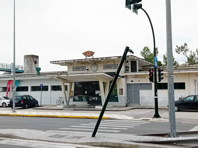 «Θύμα» σύγκρουσης με κάποιο όχημα έπεσε προφανώς ένας από τους φωτεινούς σηματοδότες που βρίσκονται στη συμβολή του νότιου περιφερειακού με την οδό Καραϊσκάκη, ο οποίος μάλιστα έχει πάρει και επικίνδυνη κλίση. Δ