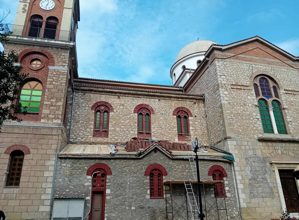 Σκαλωσιές στήθηκαν χθες το πρωί στην ανατολική πλευρά του Ιερού Μητροπολιτικού Ναού των Αγίων Κων/νου και Ελένης.