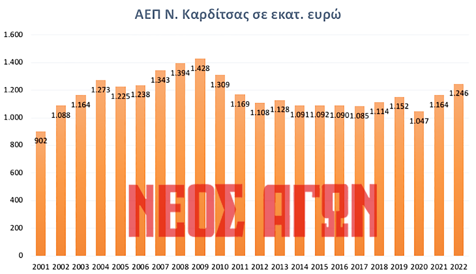 -Ουραγός είναι ο Νομός Καρδίτσας με 12.237 ευρώ (11.357 ευρώ το 2021).