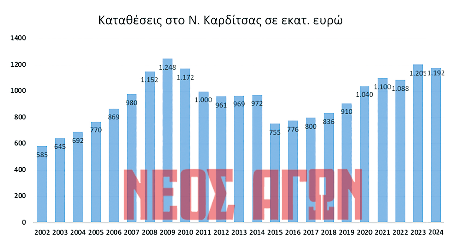 Από το 2002 μέχρι και το 2009, το ύψος των καταθέσεων διαγράφει μια ανοδική πορεία. Από το 2010, μπαίνοντας πλέον στην εποχή των μνημονίων, αρχίζει το «ροκάνισμα» του συνολικού ύψους των καταθέσεων. Το 2015, με την Ελλάδα να βρίσκεται στο επίκεντρο των ευρωπαϊκών πολιτών εξελίξεων και τα capital controls, το ύψος των καταθέσεων επιστρέφει στα επίπεδα του 2004-2005. Από τότε και μετά ακολουθεί μια ανοδική πορεία για να φτάσει τον Δεκέμβριο του 2023 κοντά στα επίπεδα που βρίσκονταν το 2009, μια 14ετία πριν, ενώ τον περυσινό Δεκέμβριο εμφάνισαν την οριακή πτώση που προαναφέραμε.