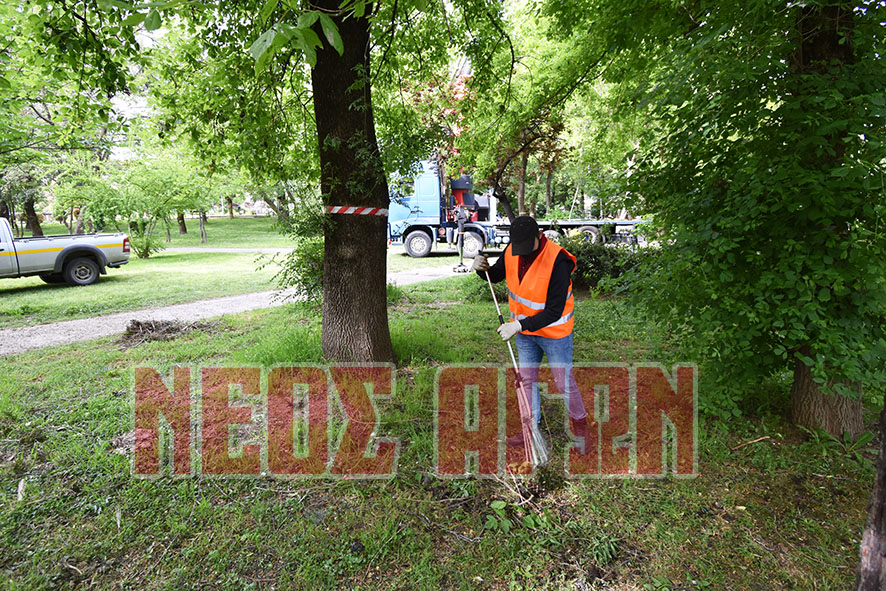 Τις εργασίες επιβλέπουν η αρμόδια δασοφύλακας Καρδίτσας κ. Βιργινία Ντόβα και ο προϊστάμενος του τμήματος πρασίνου του Δήμου Καρδίτσας κ. Κ. Στατήρας.
