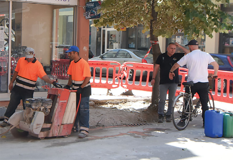 Άρχισαν ξανά οι εργασίες αποκατάστασης των πεζοδρομίων στην οδό Κουμουνδούρου