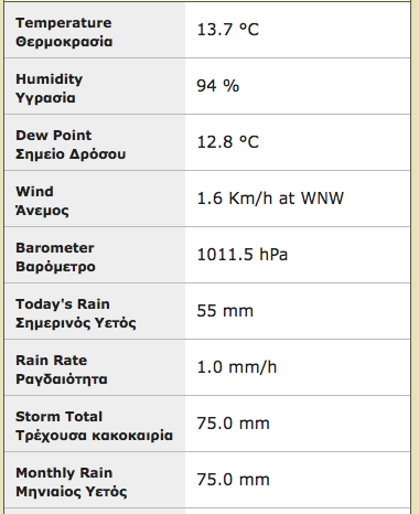 41 χιλιοστά στην Οξυά, 48 στην Κερασιά, 45 στην Πεζούλα, 46 στην Καστανιά και 18 στον Σμόκοβο.