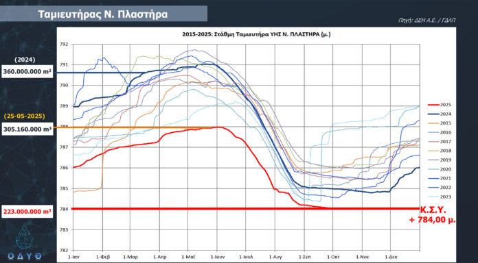 Σύμφωνα με αυτά, όπως καταγράφει ο ΝΕΟΣ ΑΓΩΝ, η φετινή αρδευτική περίοδος ξεκίνησε τον Ιούνιο στη Λ. Πλαστήρα με τα χαμηλότερα υδατικά αποθέματα της τελευταίας 10ετίας.