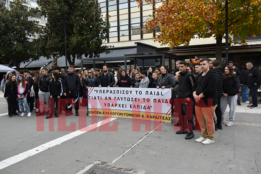 Η συγκέντρωση διαμαρτυρίας έγινε δίπλα στο κτίριο της alpha bank από μαθητές σχολείων και το φοιτητικό σύλλογο κτηνιατρικής, με τη στήριξη της Ένωσης Συλλόγων Γονέων & Κηδεμόνων Μαθητών Δήμου Καρδίτσας και της ΕΛΜΕ.