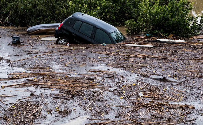 Πολλοί δρόμοι έχουν αποκλειστεί και στις δύο περιοχές λόγω πλημμυρών.