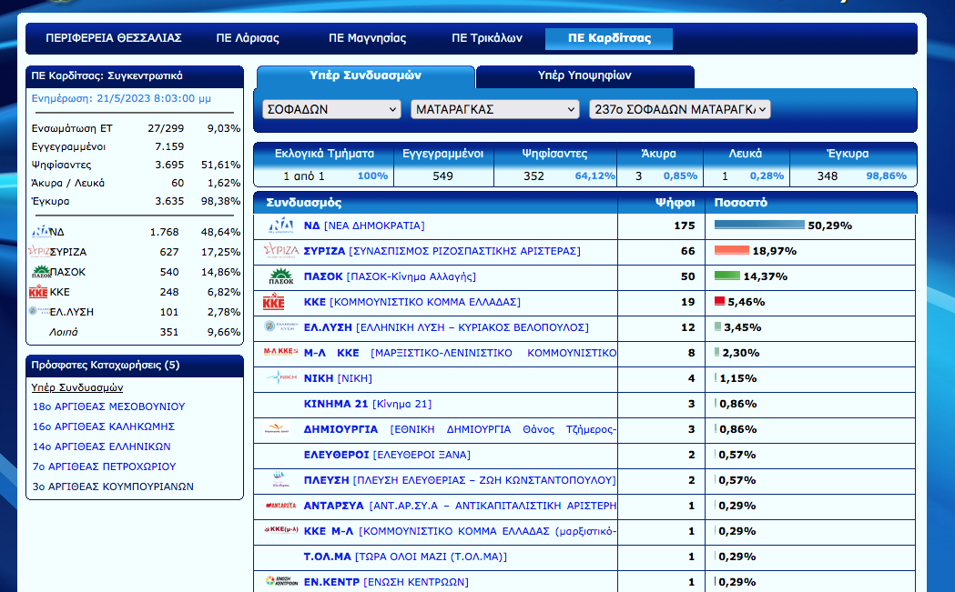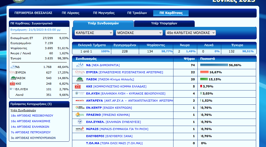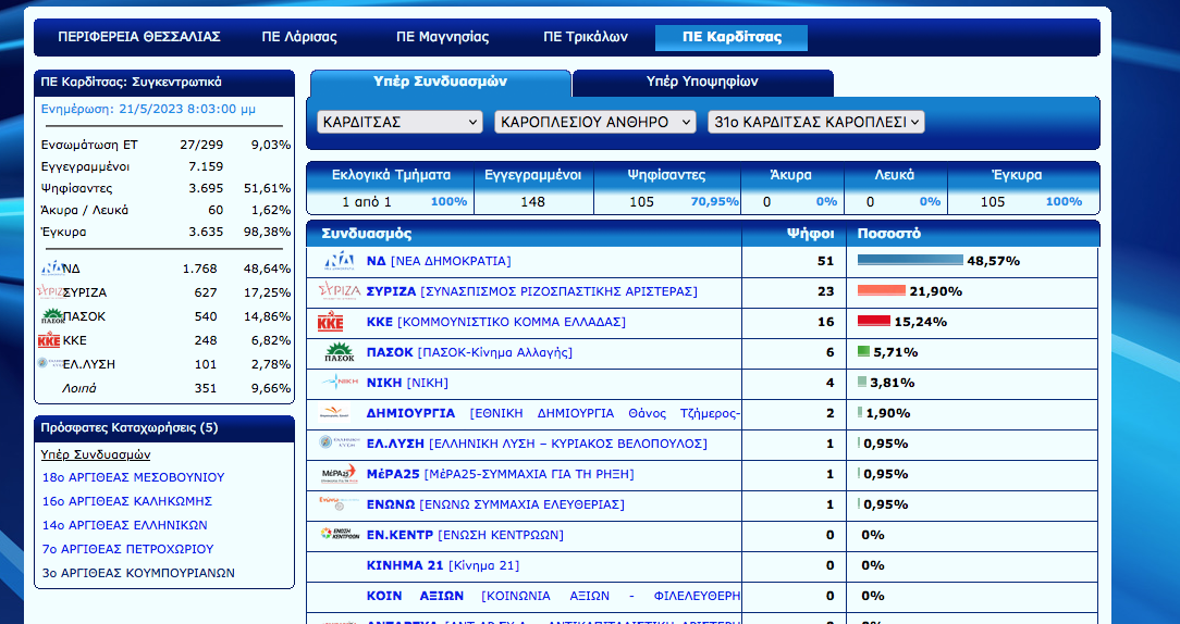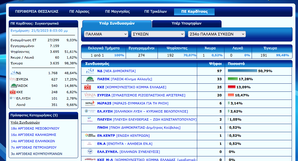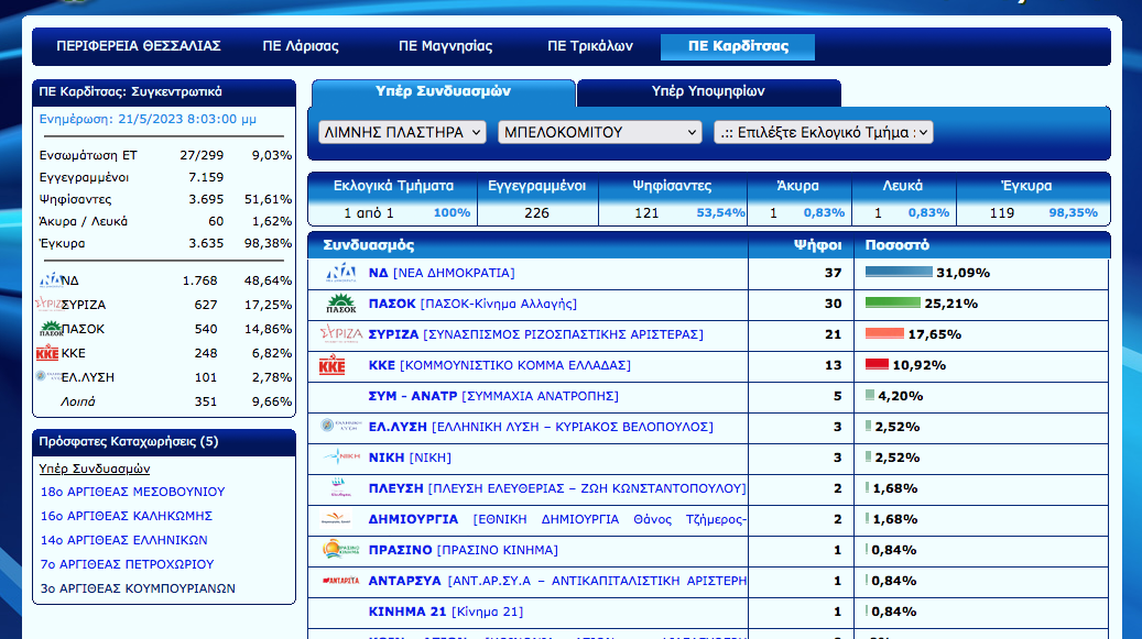 Άρχισε η ανακοίνωση των εκλογικών αποτελεσμάτων στο Ν. Καρδίτσας. Ο Νέος Αγών θα σας ενημερώνει σε συνεχή ροή για τα αποτελέσματα αλλά και με πλούσιο ρεπορτάζ για την εκλογική βραδιά…