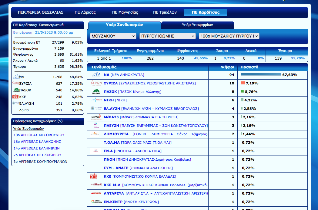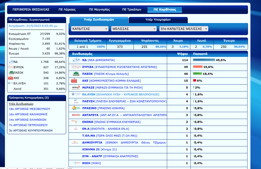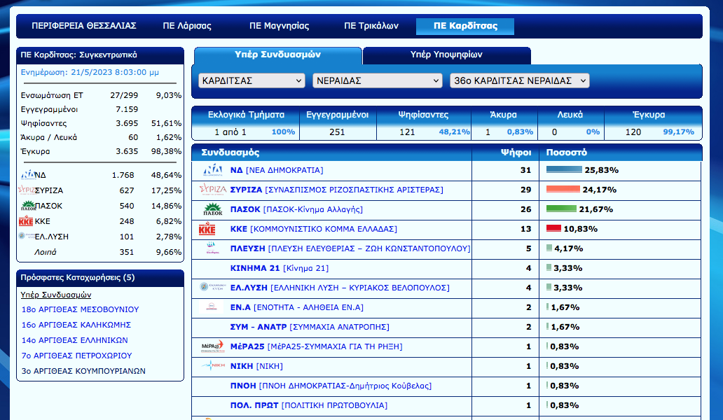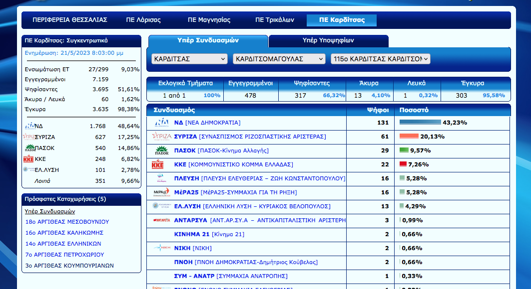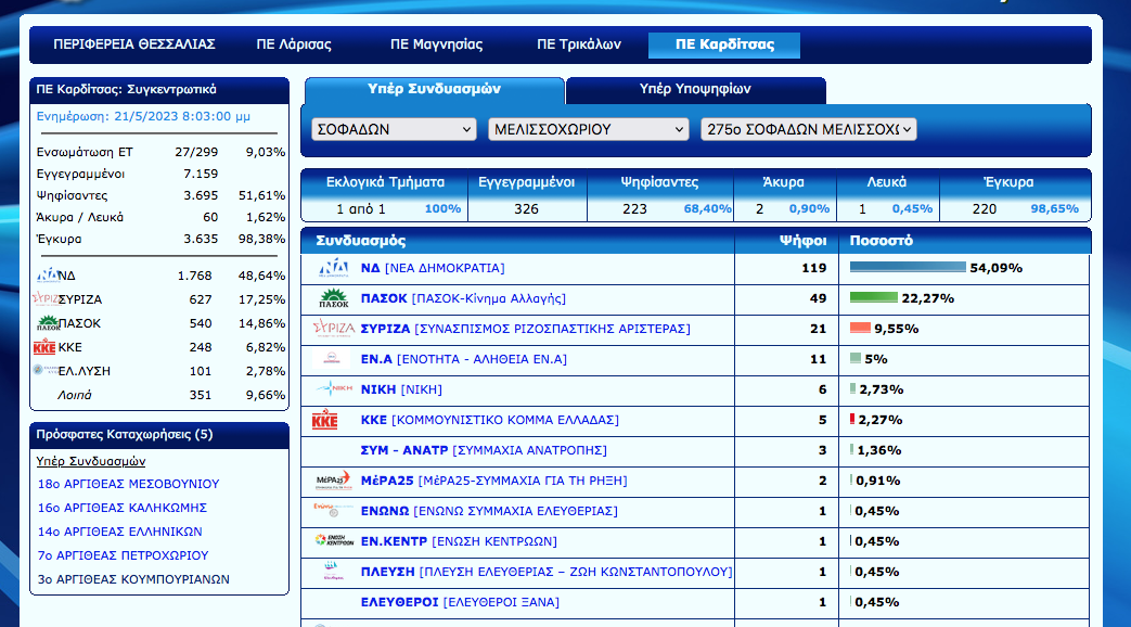 Άρχισε η ανακοίνωση των εκλογικών αποτελεσμάτων στο Ν. Καρδίτσας. Ο Νέος Αγών θα σας ενημερώνει σε συνεχή ροή για τα αποτελέσματα αλλά και με πλούσιο ρεπορτάζ για την εκλογική βραδιά…