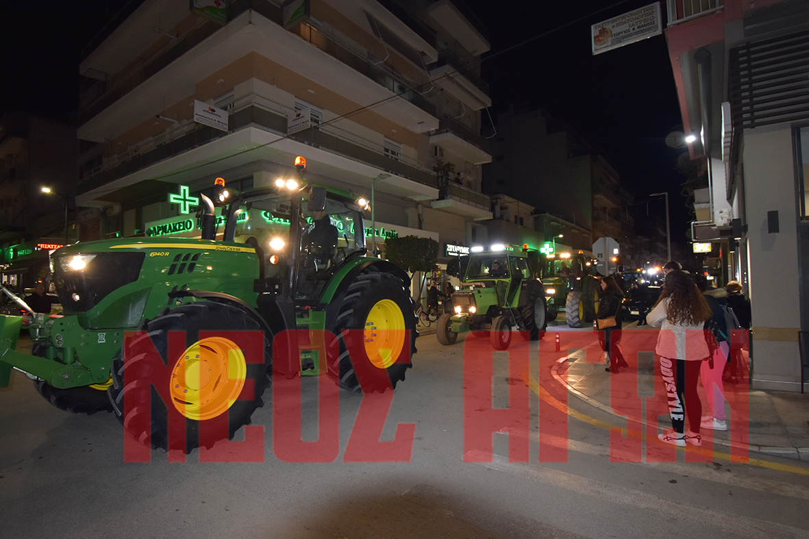 Με τη συμμετοχή περίπου 100 τρακτέρ και αυτοκινήτων αναχώρησαν νωρίς το απόγευμα από το μπλόκο και κινήθηκαν στο κέντρο της πόλης. Με τα χαρακτηριστικά κορναρίσματα και τα λάβαρα των αγροτικών Συλλόγων στις οροφές, τα τρακτέρ διέσχισαν τους κεντρικούς δρόμους της Καρδίτσας στέλνοντας μήνυμα ότι θα συνεχίσουν τον αγώνα επιβίωσης που δίνουν, στον οποίο έχουν προσδώσει το χαρακτήρα της επιβίωσης ολόκληρου του Νομού μετά και τις φονικές πλημμύρες που έπληξαν την περιοχή τον περασμένο Σεπτέμβριο.