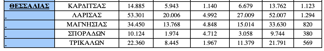 Σε ότι αφορά τους υπόλοιπους Νομούς της Θεσσαλίας, το ισοζύγιο προσλήψεων- απολύσεων στο 10μηνο ήταν θετικό κατά 1.294 θέσεις στη Λάρισα, θετικό κατα 569 θέσεις στα Τρίκαλα, θετικό κατά 820 στη Μαγνησία και θετικό κατά 380 στις Σποράδες.