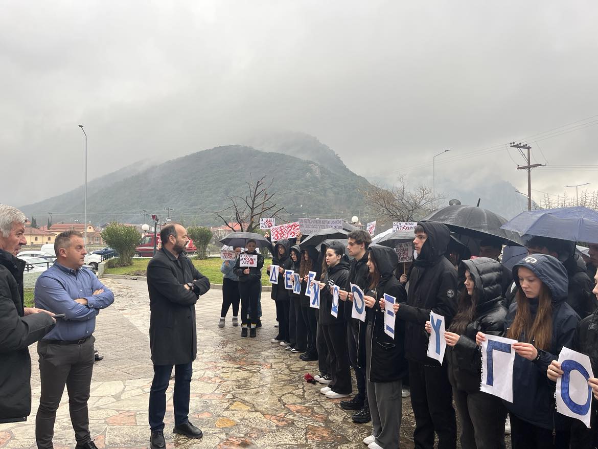 «Ένα μεγάλο μπράβο που συμμετέχετε στο σημερινό Πανεκπαιδευτικό Συλλαλητήριο για τα Τέμπη. Είμαι ιδιαίτερα περήφανος που κινητοποιείστε και δίνετε τον δικό σας αγώνα με αυτή τη συγκινητική σιωπηλή διαμαρτυρία. Εσείς είστε το μέλλον και πρέπει όλοι να παλέψουμε για εσάς. Δύο χρόνια μετά και είμαστε ακόμη συγκλονισμένοι με το τραγικό αυτό δυστύχημα που στοίχισε τη ζωή σε 57 ψυχές. Οι σκέψεις μας είναι σε αυτούς που χάθηκαν και στους συγγενείς τους», ανέφερε χαρακτηριστικά ο Δήμαρχος Μουζακίου.