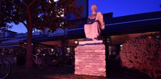 Με ροζ χρώμα φωτίστηκαν οι μούσες στην Καρδίτσα