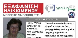Silver alert για την 77χρονη από τη Ματαράγκα που αγνοείται