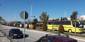 Πορεία διαμαρτυρίας των τουριστικών λεωφορείων στο κέντρο του Βόλου (ΦΩΤΟ)